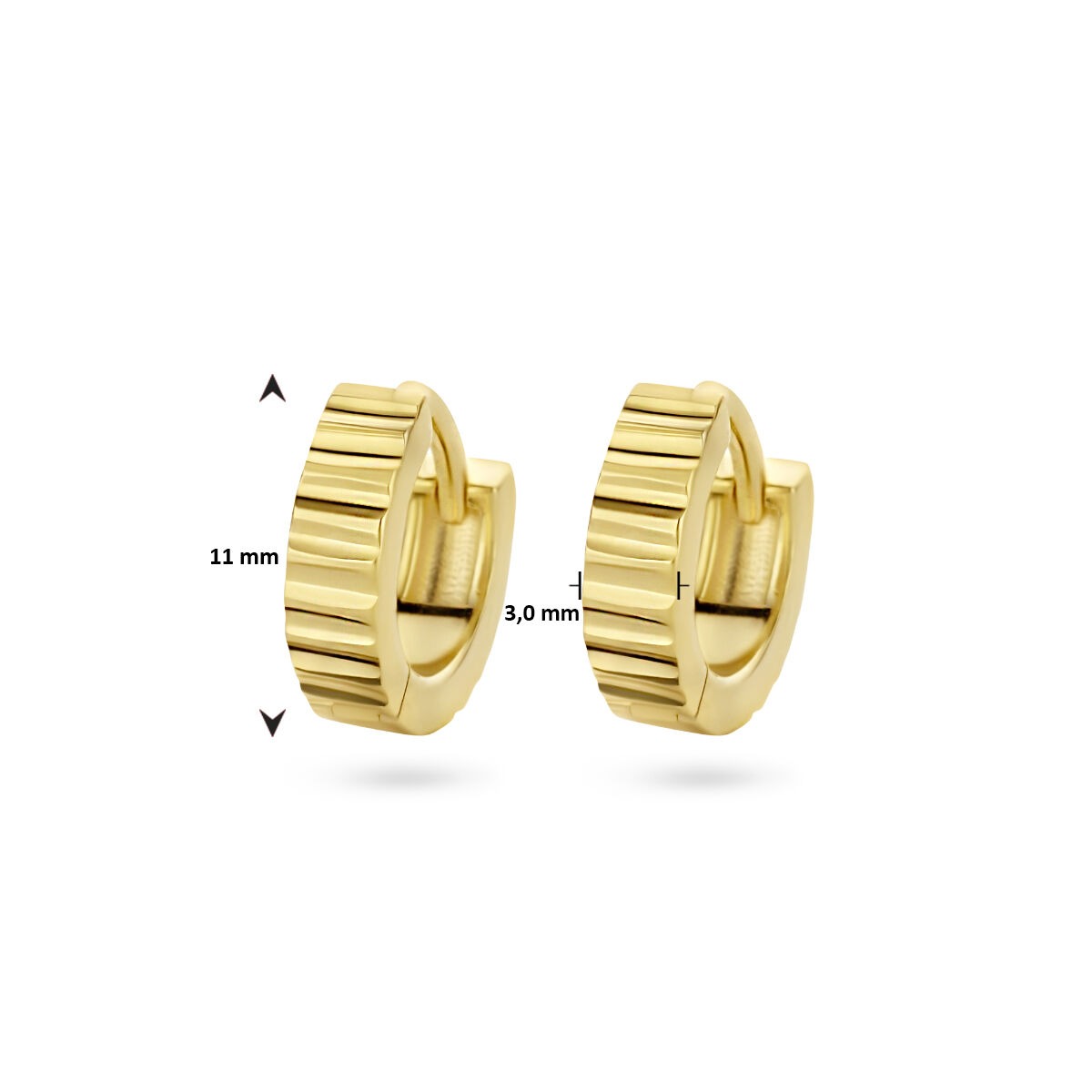 Deze geelgoud op 925 zilveren klapoorringen zijn een stijlvolle basis voor elke sieradencollectie. Met een diameter van 11 mm en een breedte van 3 mm bieden ze een subtiele, elegante uitstraling die moeiteloos combineert met zowel casual als formele looks.
