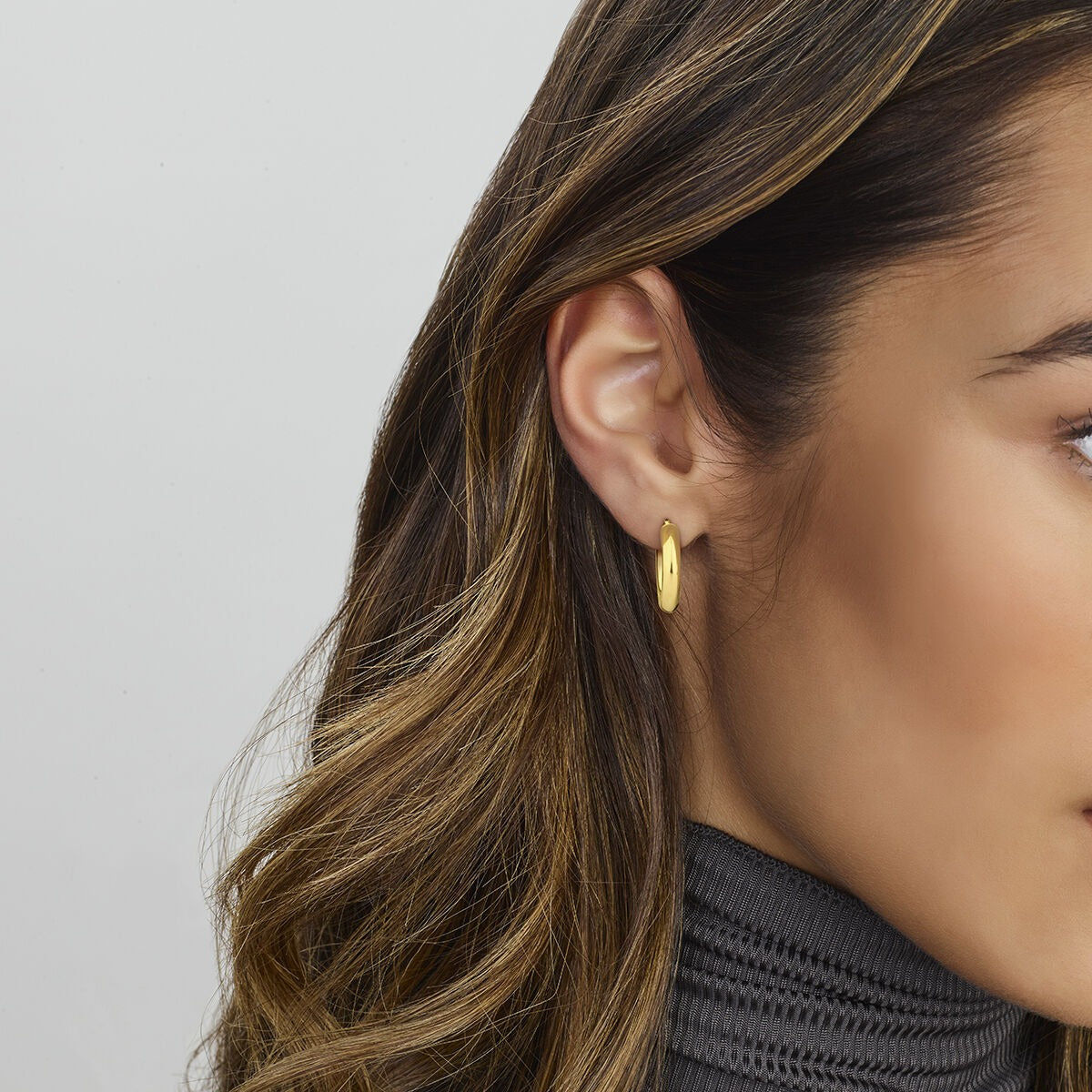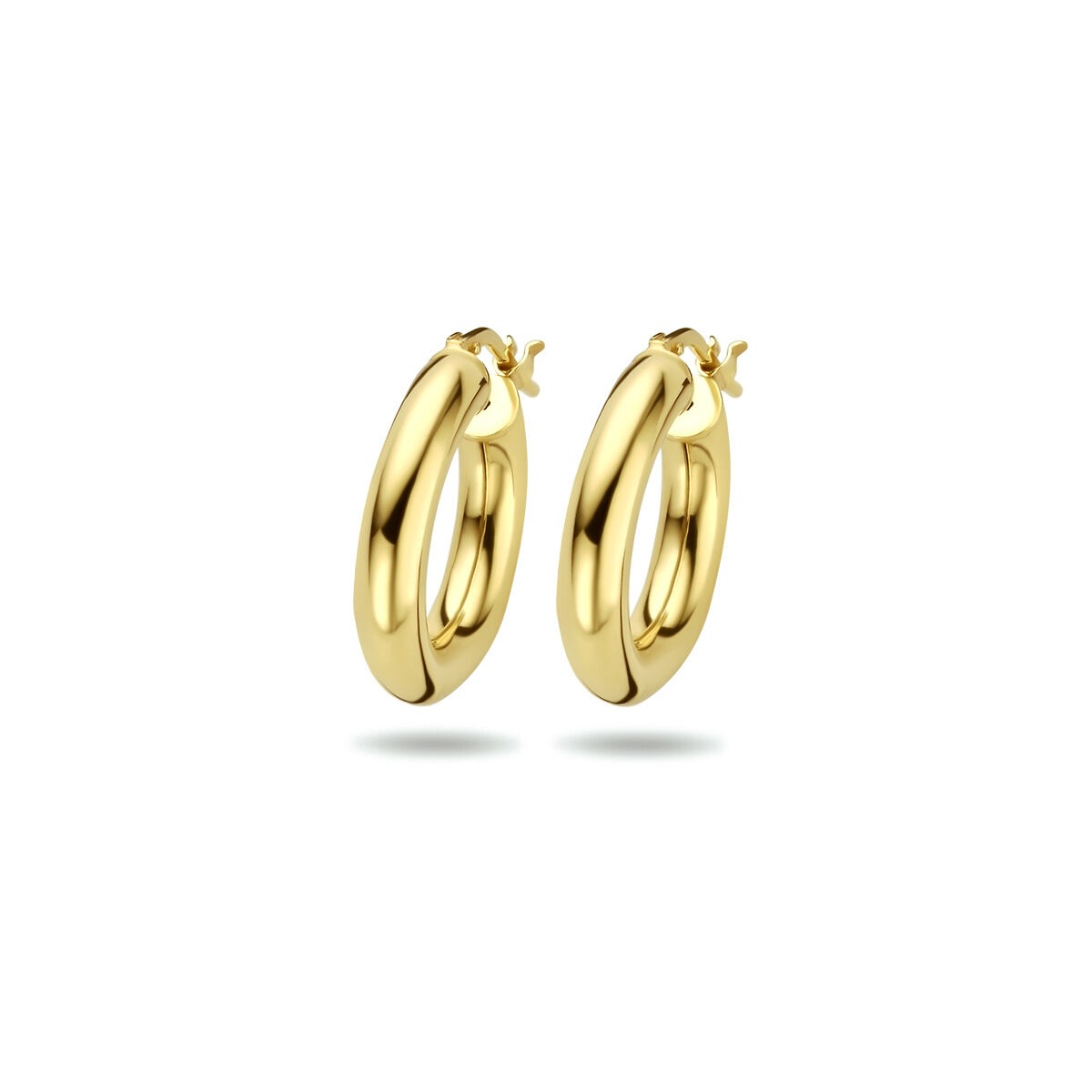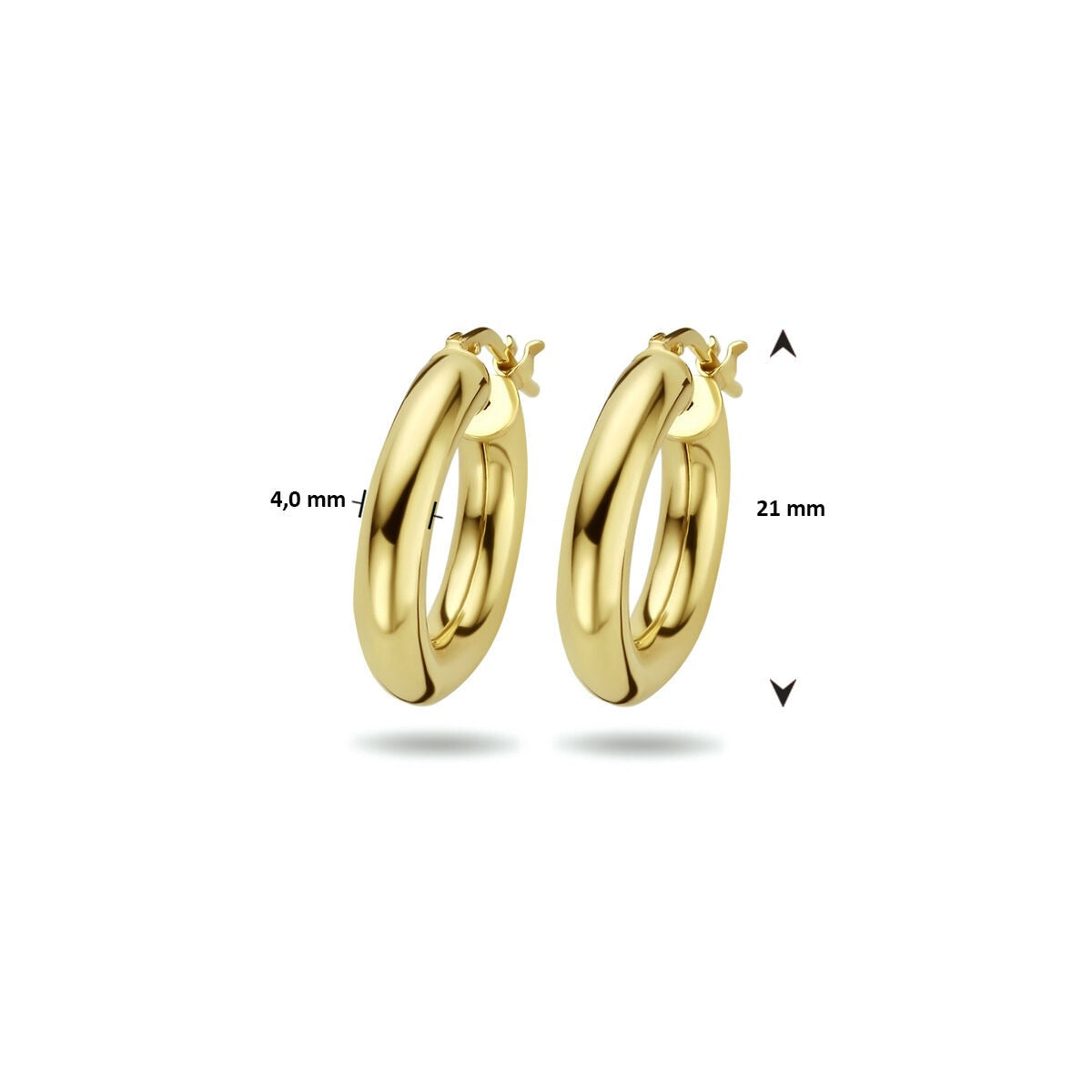 De warme goudkleurige finish geeft het sieraad een luxe uitstraling, terwijl het zilveren basismateriaal zorgt voor stevigheid en draagcomfort. Dankzij de praktische scharniersluiting zijn de oorringen gemakkelijk in en uit te doen.