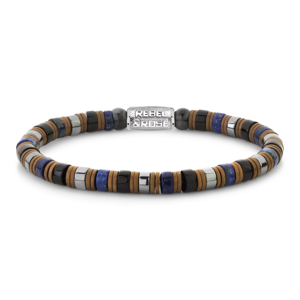 De Slices Mixed Blue armband van Rebel & Rose is een verfijnde mix van natuurlijke elegantie en moderne flair. Deze blauwe kralen armband uit de Bracelets Beads collectie combineert gepolijste kralen van hematiet, black stone en kunstmatig vervaardigde lapis lazuli. Het resultaat is een stijlvol kleurenspel van diepblauw, antraciet en zilvergrijs – een veelzijdige combinatie die moeiteloos past bij elke outfit.