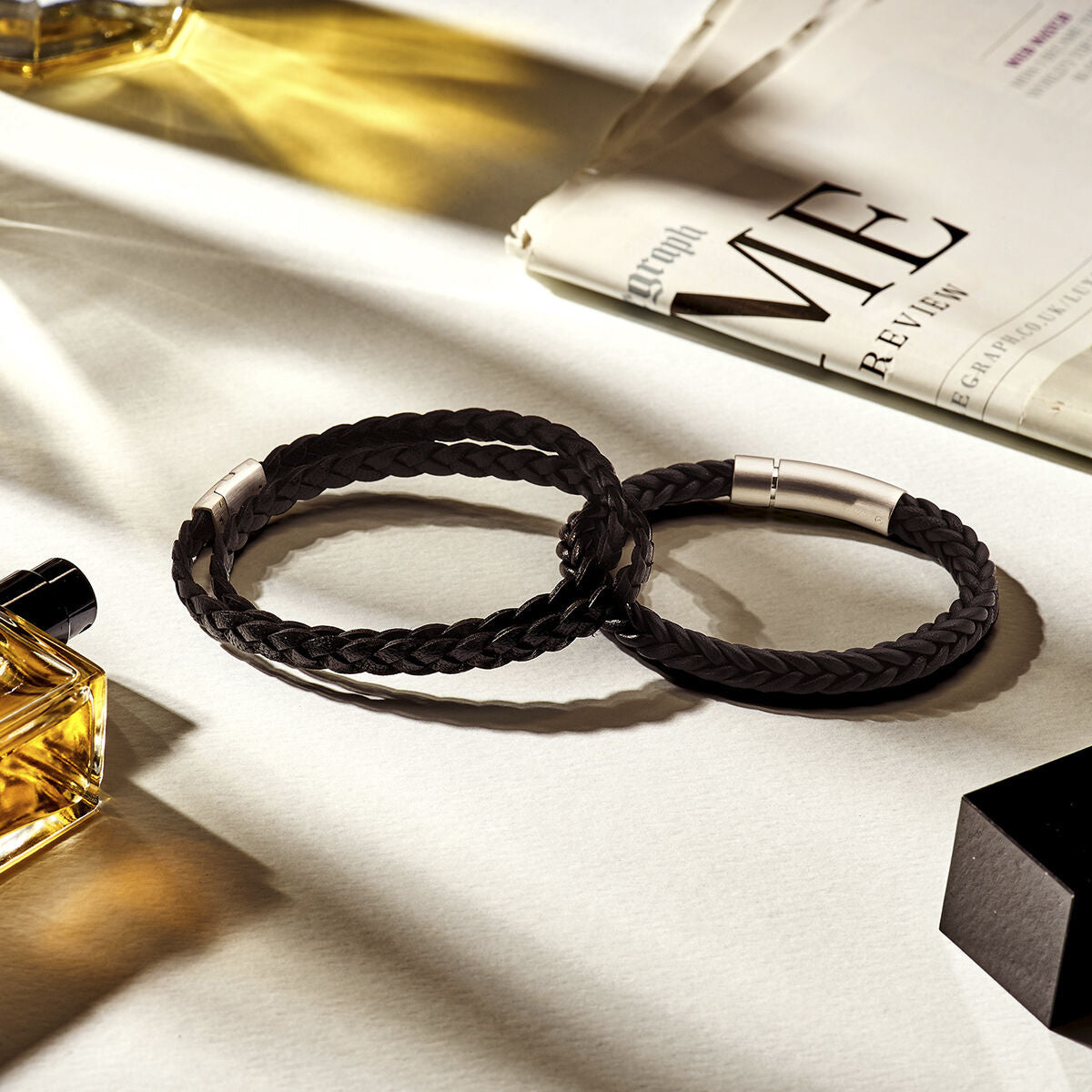 Steel black leather bracelet. The bracelet has a width of 8.6mm.