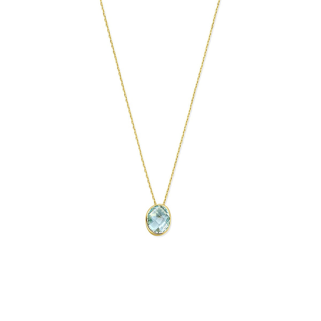 The aquamarine is a light blue gemstone. This light blue color, better known as aqua, is very characteristic of the aquamarine necklace. This stone has a calm, subtle, yet stylish appearance.