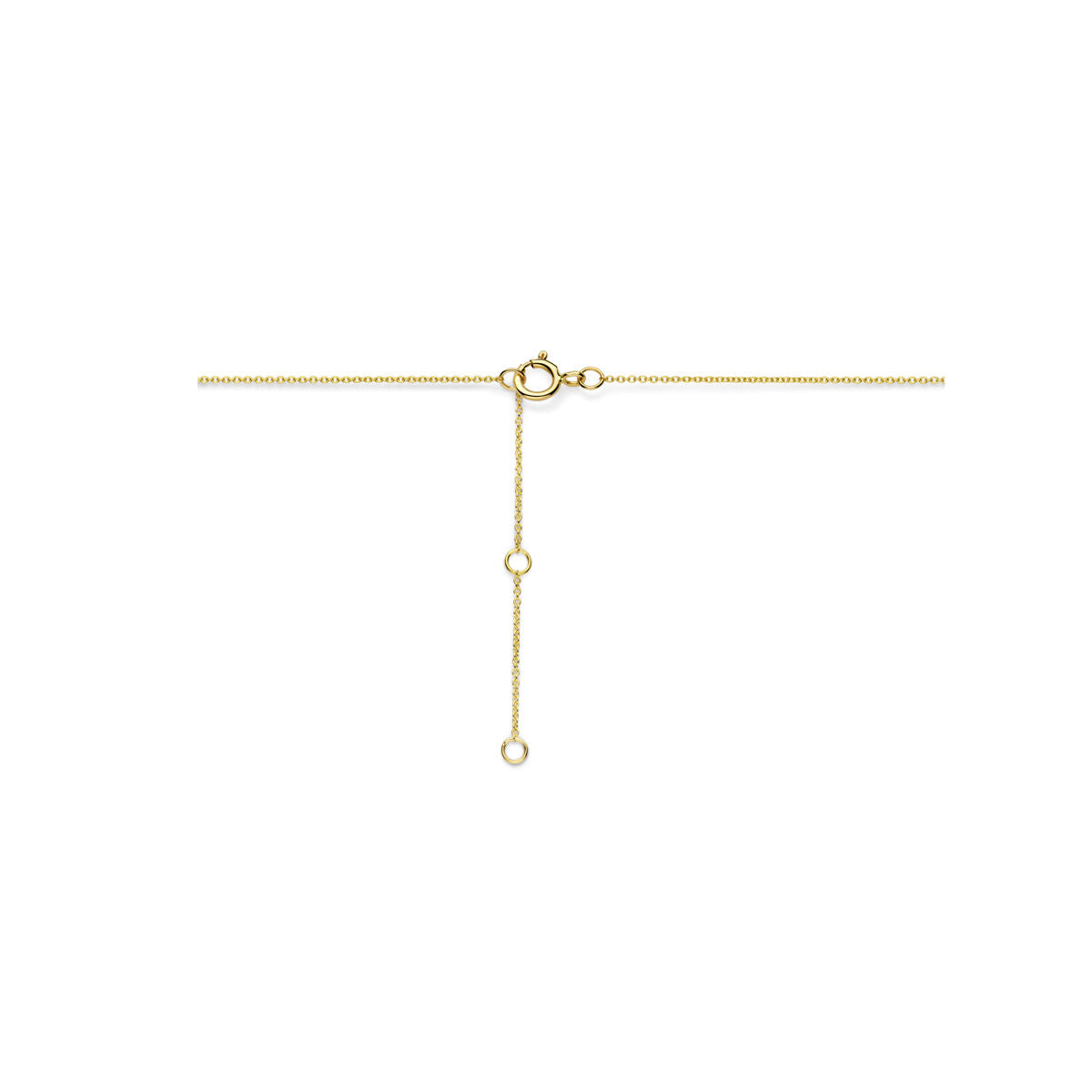 De combinatie van het warme geelgoud en de sprankelende diamant zorgt ervoor dat deze ketting een veelzijdig accessoire is, geschikt voor zowel dagelijks gebruik als speciale gelegenheden. Met een verstelbare lengte van 40 tot 44 cm valt de ketting prachtig om de hals en biedt hij een comfortabele pasvorm. De fijne ankerketting en de veilige veersluiting maken dit sieraad tot een waardevolle toevoeging aan elke sieradencollectie.