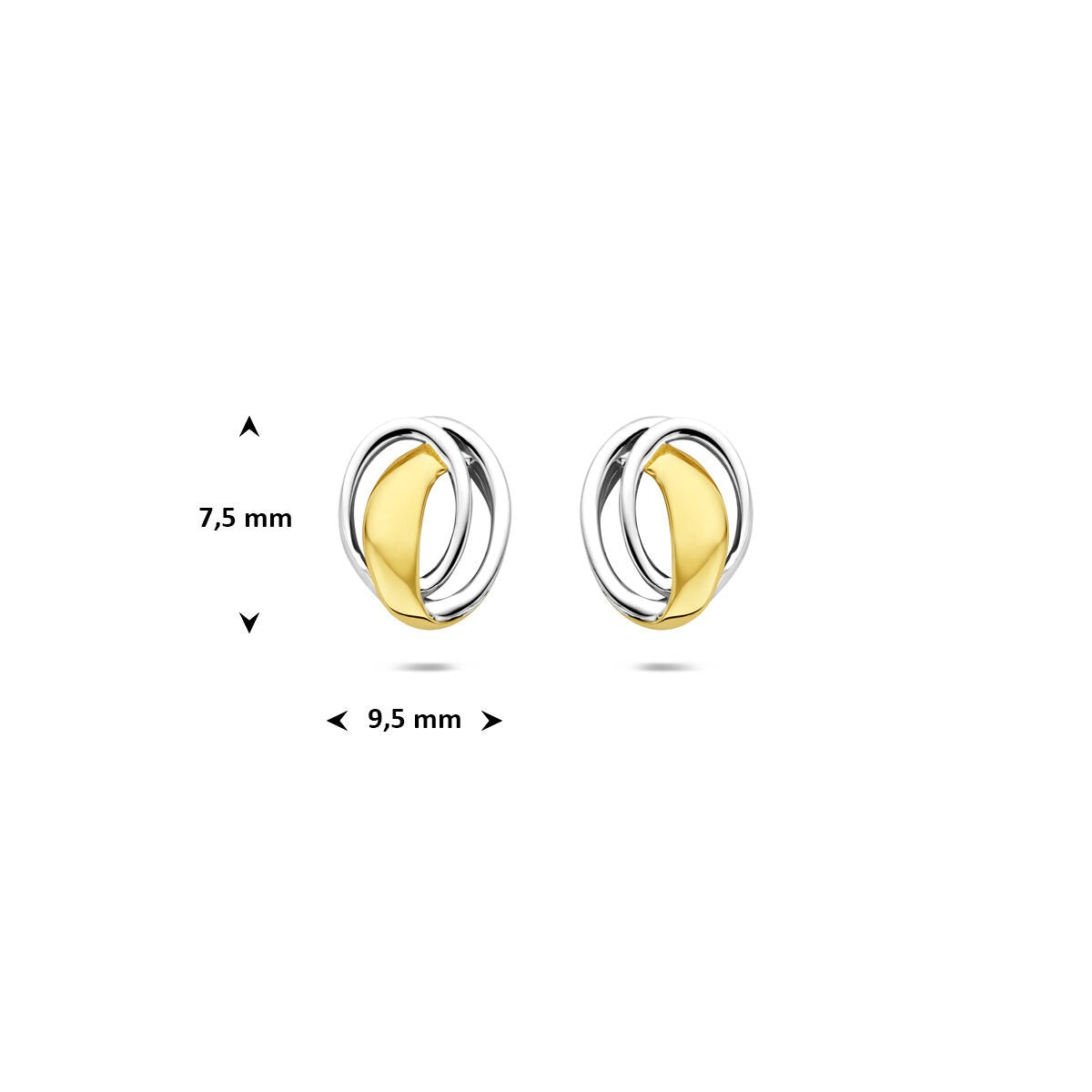 Deze stijlvolle gouden oorknopjes in 9 karaat geel- en witgoud zijn een verfijnde toevoeging aan iedere sieradencollectie. Het ovale ontwerp, met een afmeting van 7,5 bij 9,5 mm, speelt subtiel met de combinatie van warm geelgoud en helder witgoud voor een modern contrast met klassieke allure.