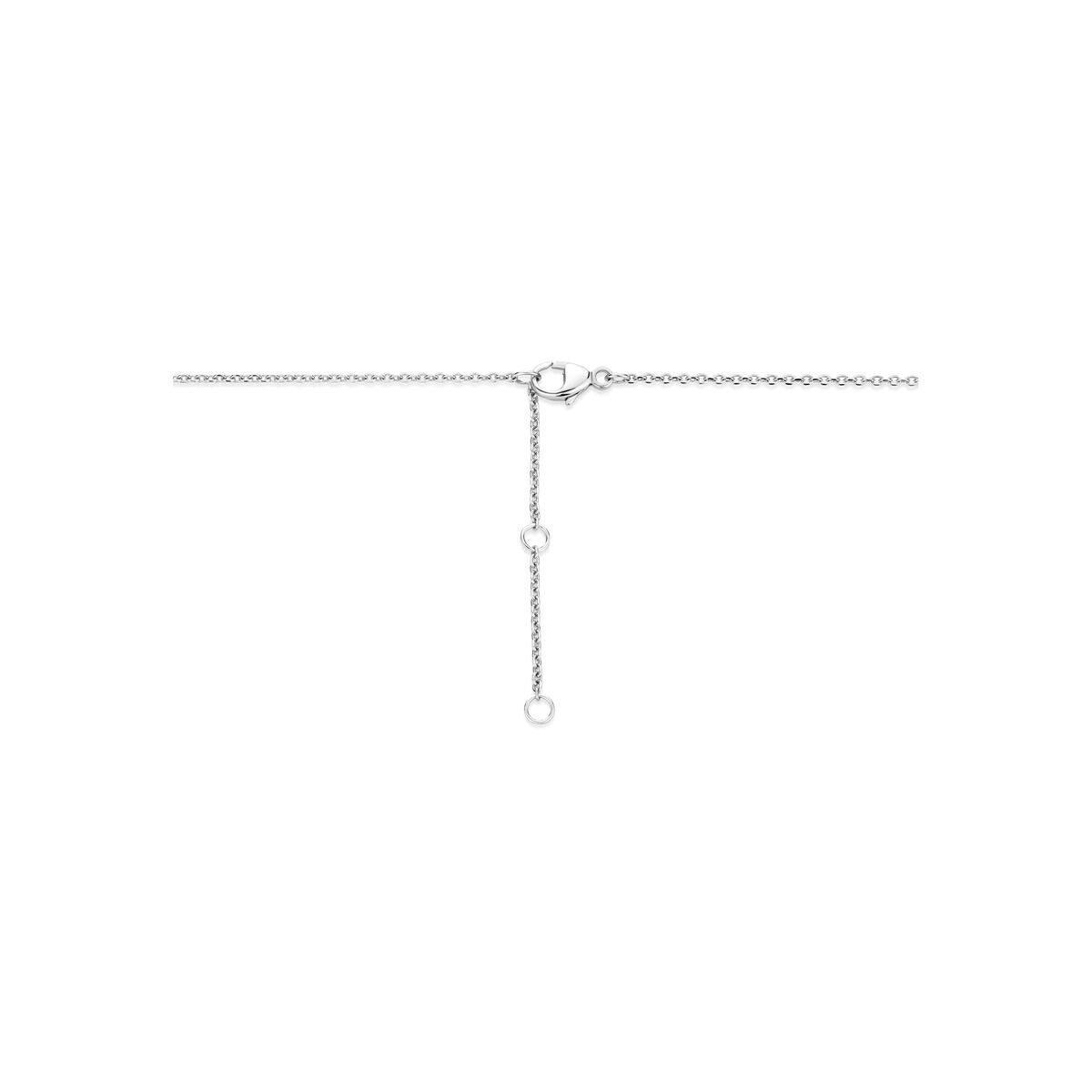 Dit gerhodineerd 925 zilveren collier met letter is een persoonlijk en verfijnd sieraad binnen onze collectie Zilveren kettingen. De hanger in lettervorm heeft een afmeting van 11,5 mm hoog en 8,5 mm breed en is bezet met briljant geslepen zirkonia in een pavézetting. De transparante stenen zorgen voor een subtiele, sprankelende schittering die het initiale karakter extra accentueert.