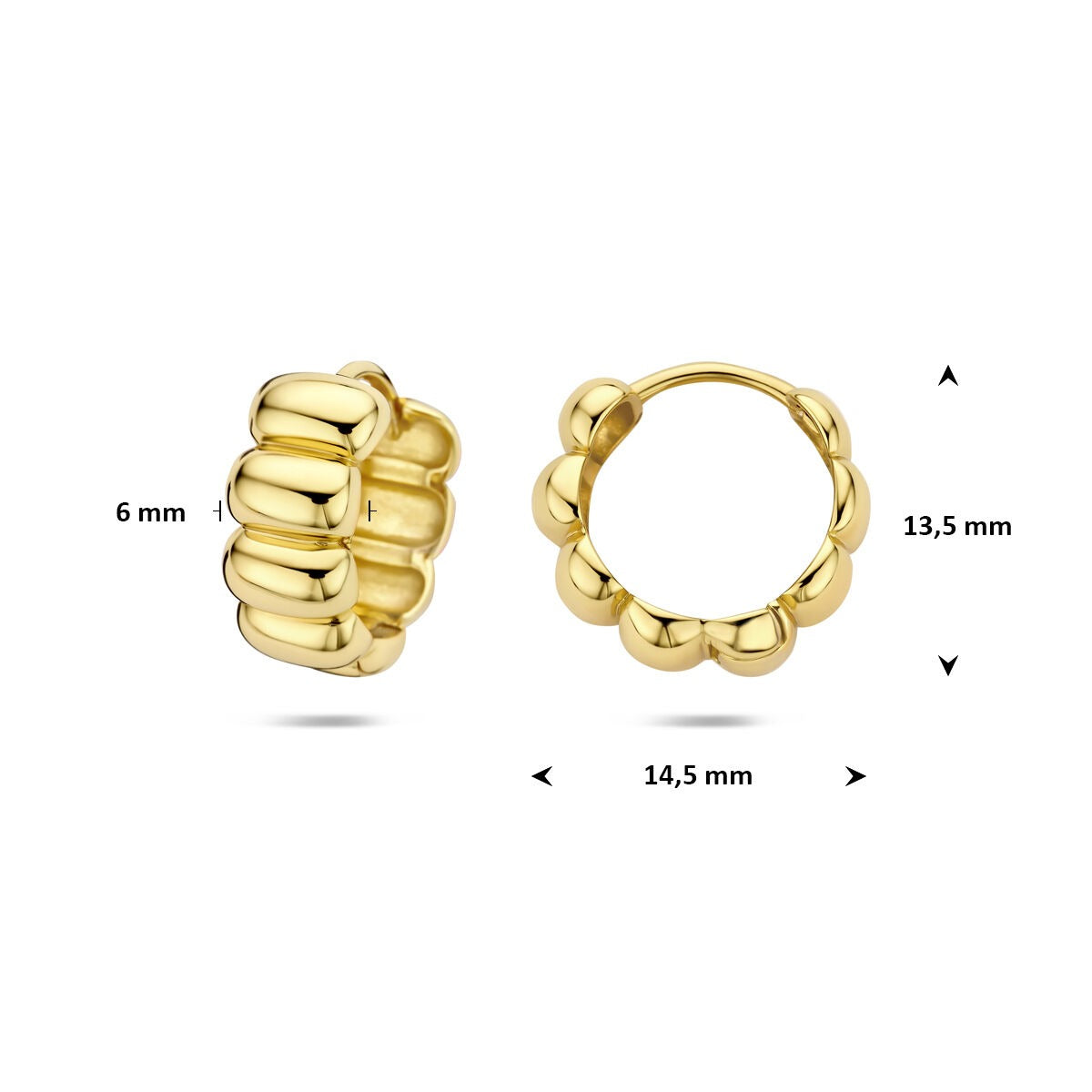 Het warme goudkleurige oppervlak geeft deze oorringen een luxueuze uitstraling die zowel overdag als 's avonds perfect tot zijn recht komt. De scharniersluiting zorgt voor een comfortabele en veilige pasvorm, waardoor je ze moeiteloos dagelijks kunt dragen.