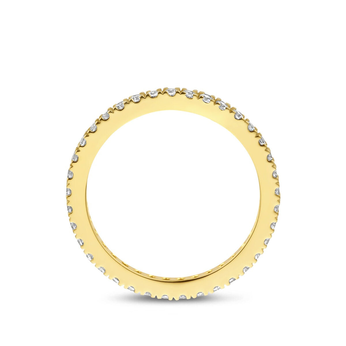 Deze verguld geel 925 zilveren ring met zirkonia is een verfijnde toevoeging aan onze collectie zilveren ringen. Het slanke ontwerp met een breedte van 1,6 mm maakt haar bijzonder elegant en subtiel aan de hand. De briljant geslepen zirkonia’s zijn geplaatst in een alliance rijzetting, waardoor een aaneengesloten lijn van sprankelende stenen ontstaat. Het resultaat is een ring met zirkonia die het licht prachtig vangt en een heldere, diamantachtige glans uitstraalt.