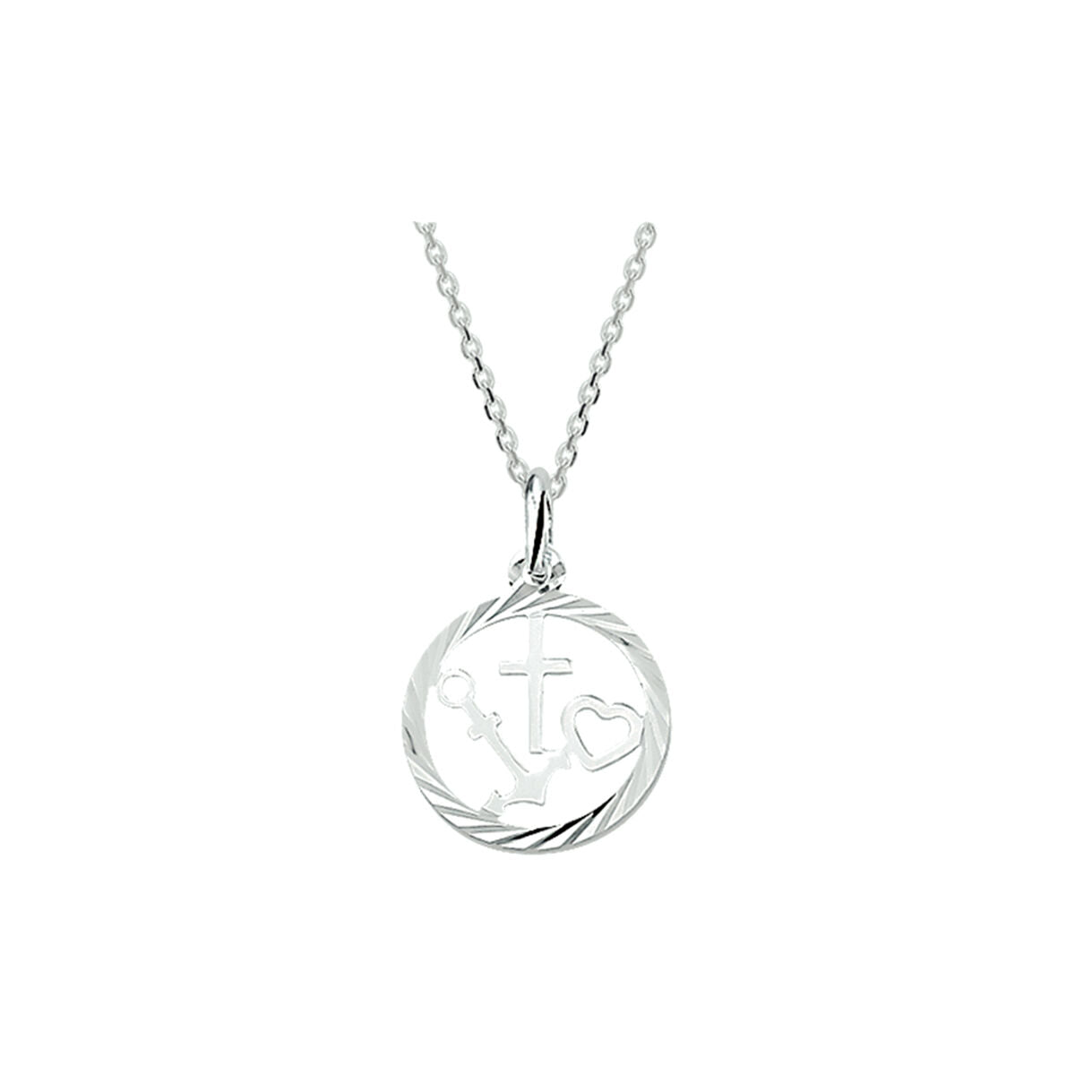 Silver necklace with faith, hope and love pendant. The length of the necklace is 41cm with 4cm extension and the link width is 1.1mm.