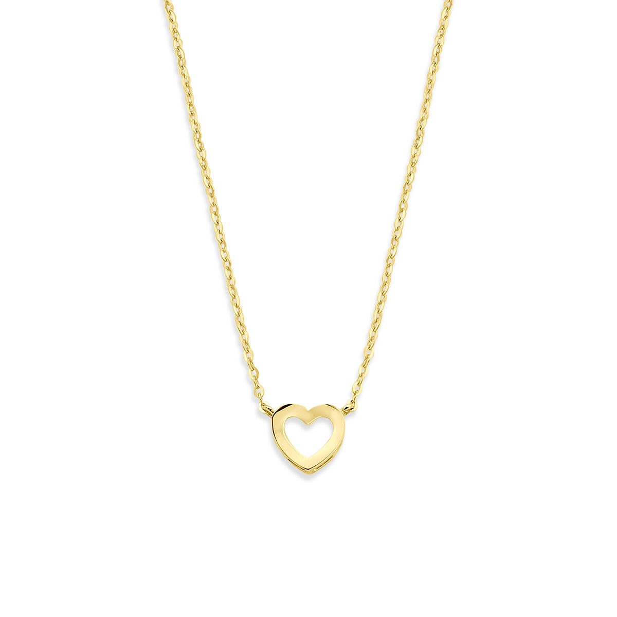 Yellow gold necklace with a heart. The length is 41cm with 4cm extension. The link width is 1.1mm.