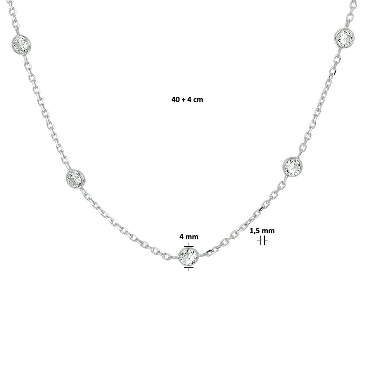 zirconia necklace 40 + 4 cm silver rhodium plated