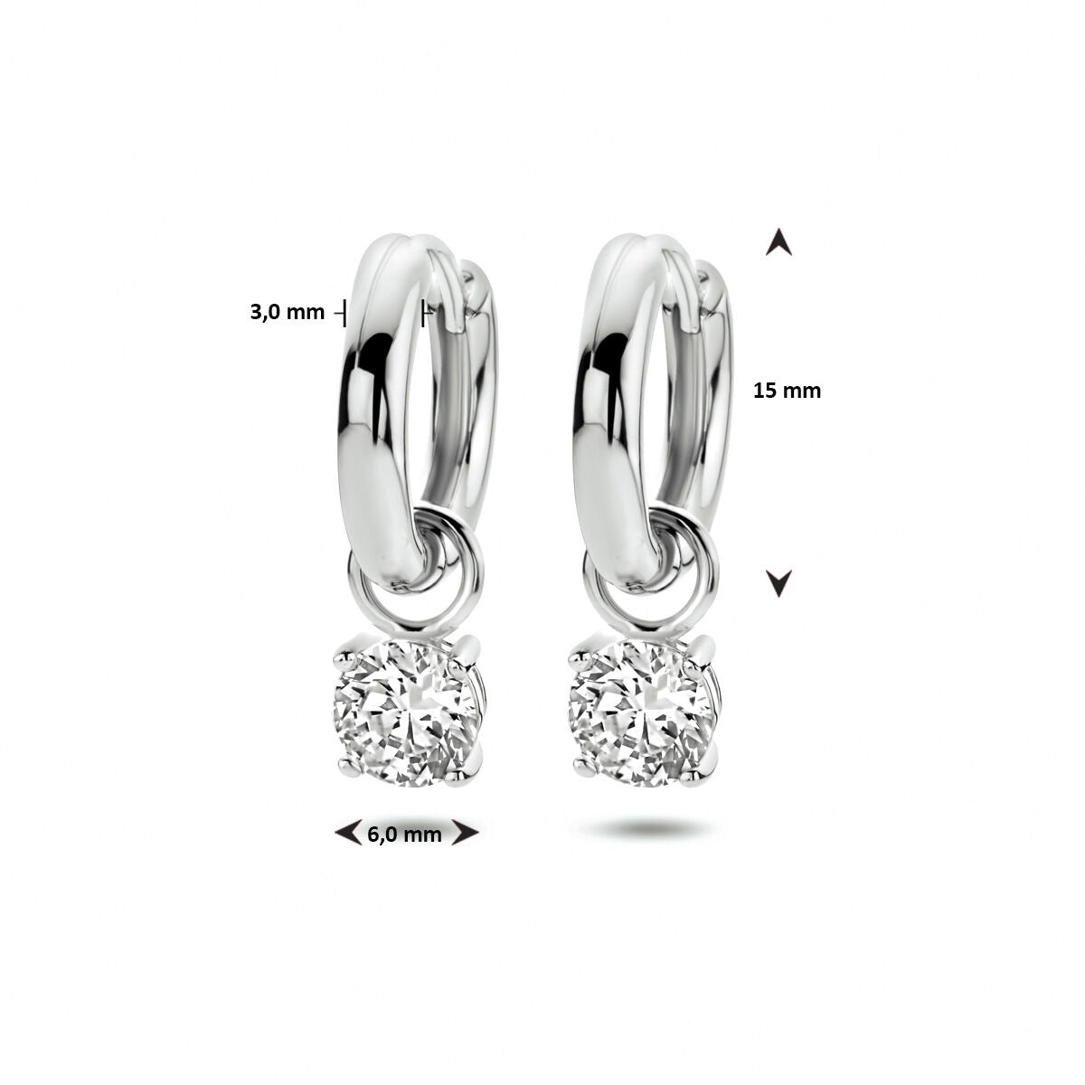 drop earrings zirconia silver rhodium plated