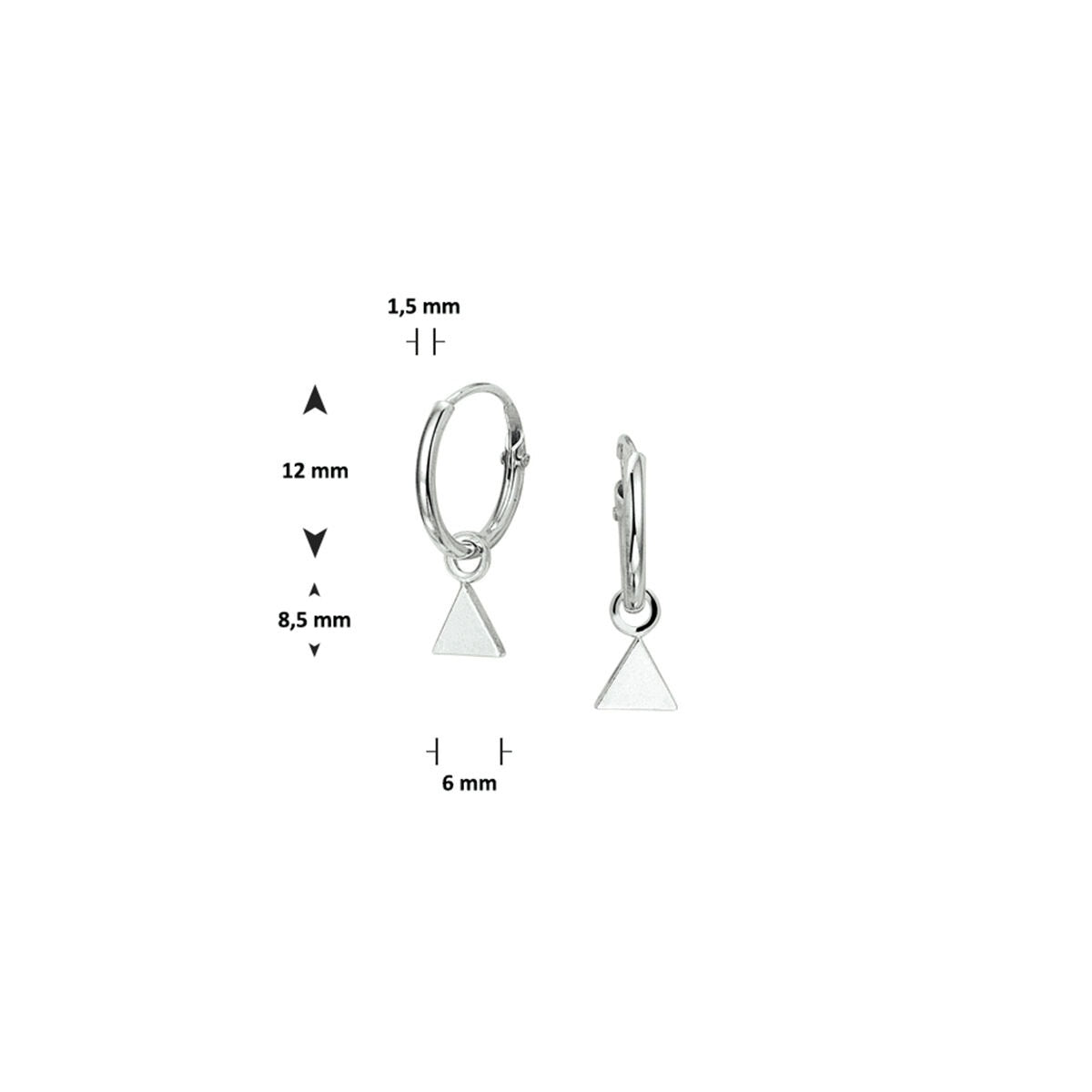 Rhodium-plated silver earrings measuring 12x1.5mm with a triangle of 8.5x6mm.
