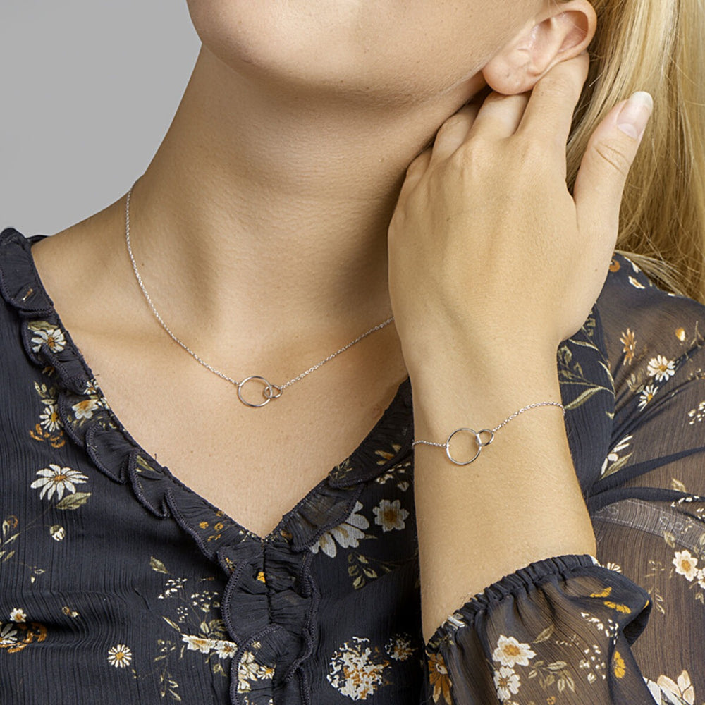 Silver necklace ladies circles rhodium plated