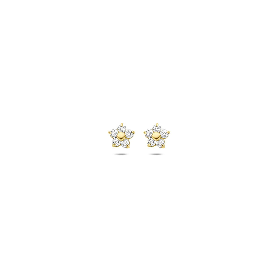 ear studs flower and zirconia 14K yellow gold