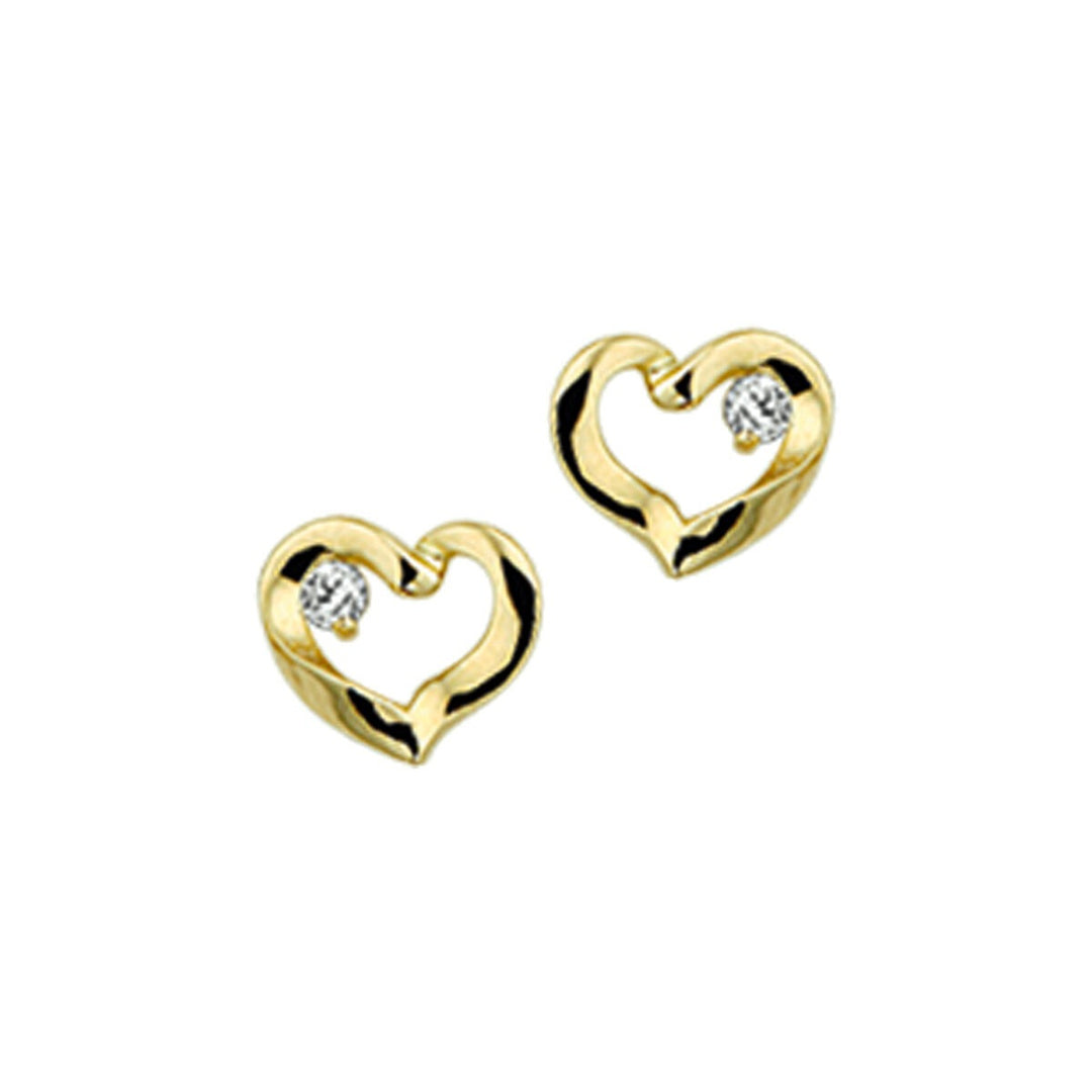 ear studs heart zirconia 14K yellow gold