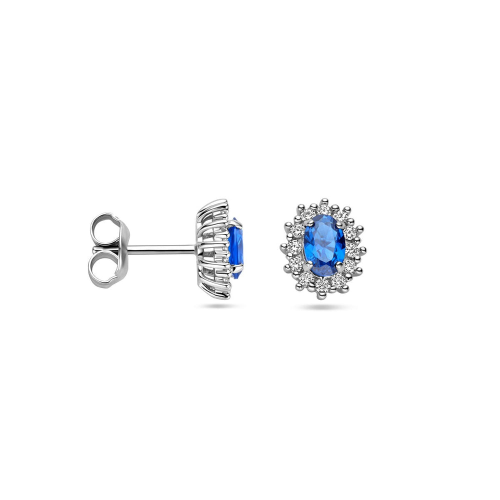 ear studs zirconia and synthetic sapphire halo silver rhodium plated