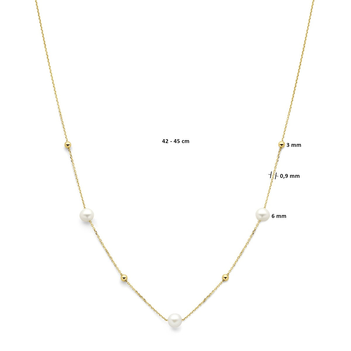 14k geelgouden collier met bolletjes en zoetwaterparels