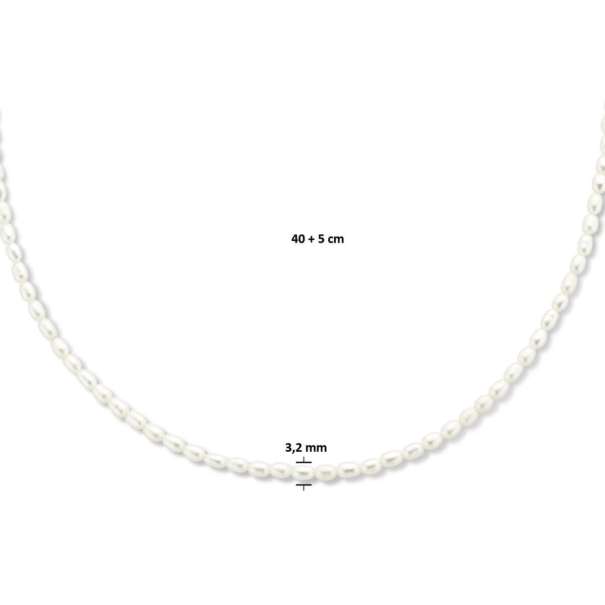 Yellow gold on 925 silver necklace with freshwater pearls. The necklace has a wearing length of 40cm and an extension of 5cm. Equipped with a lobster clasp closure. No guarantee on plating.