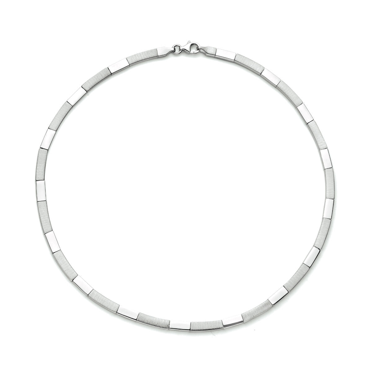 Rhodium-plated 925 silver necklace with a polished/matte finish and a sturdy lobster clasp. The necklace has a width of 4.3mm and a wearing length of 43cm.