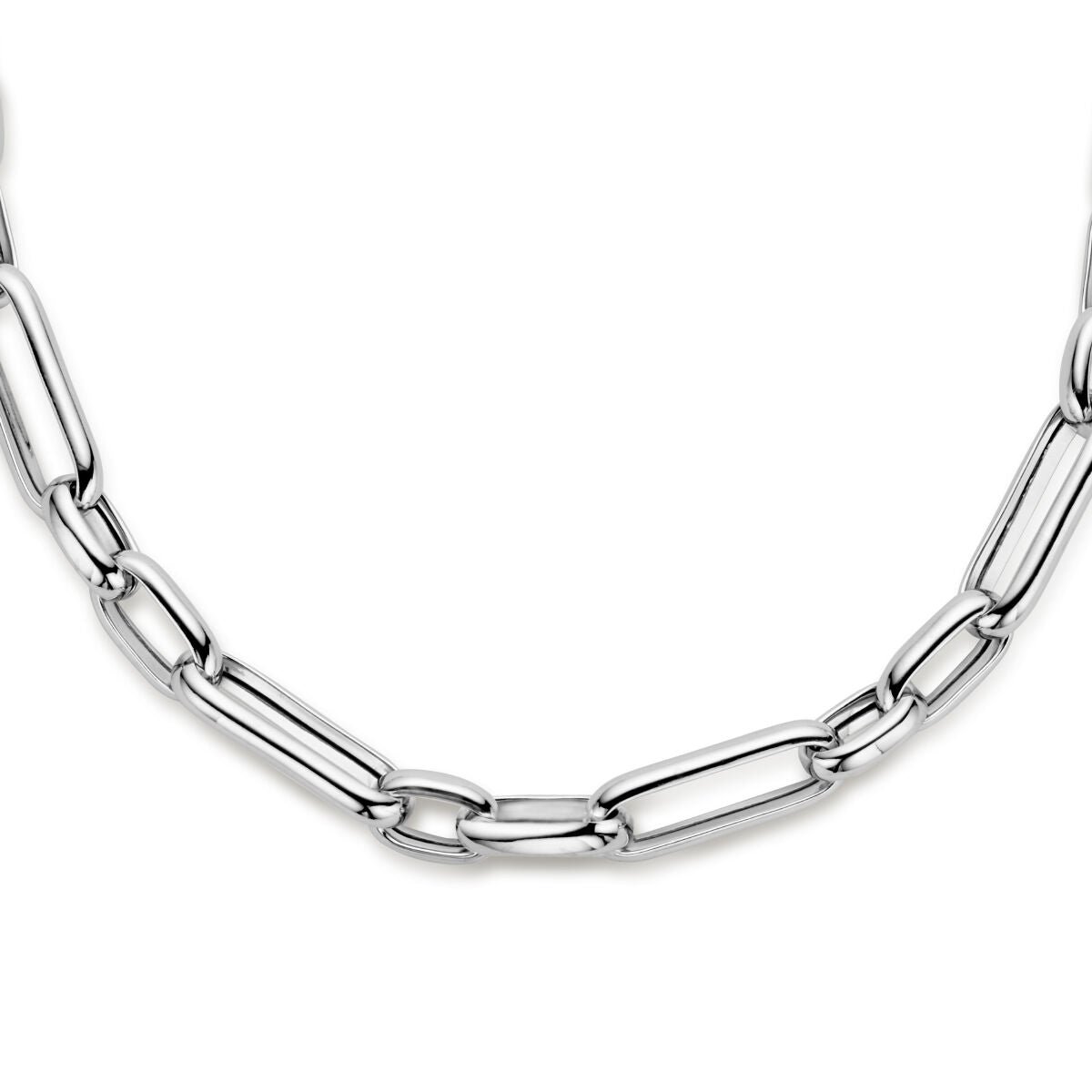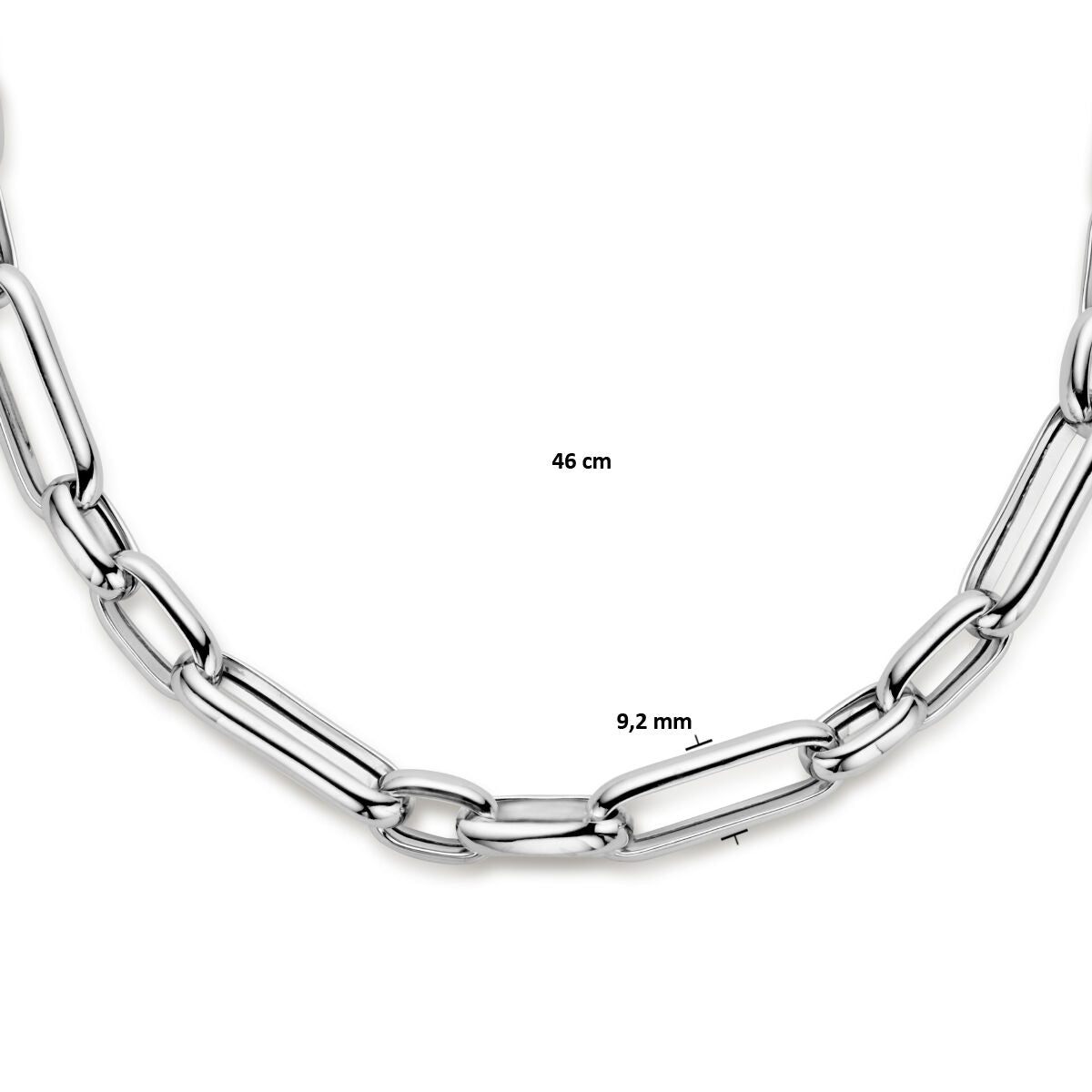 Rhodium-plated 925 silver necklace with a link width of 9.2mm. The necklace has a wearing length of 46cm. Equipped with a lobster clasp closure.