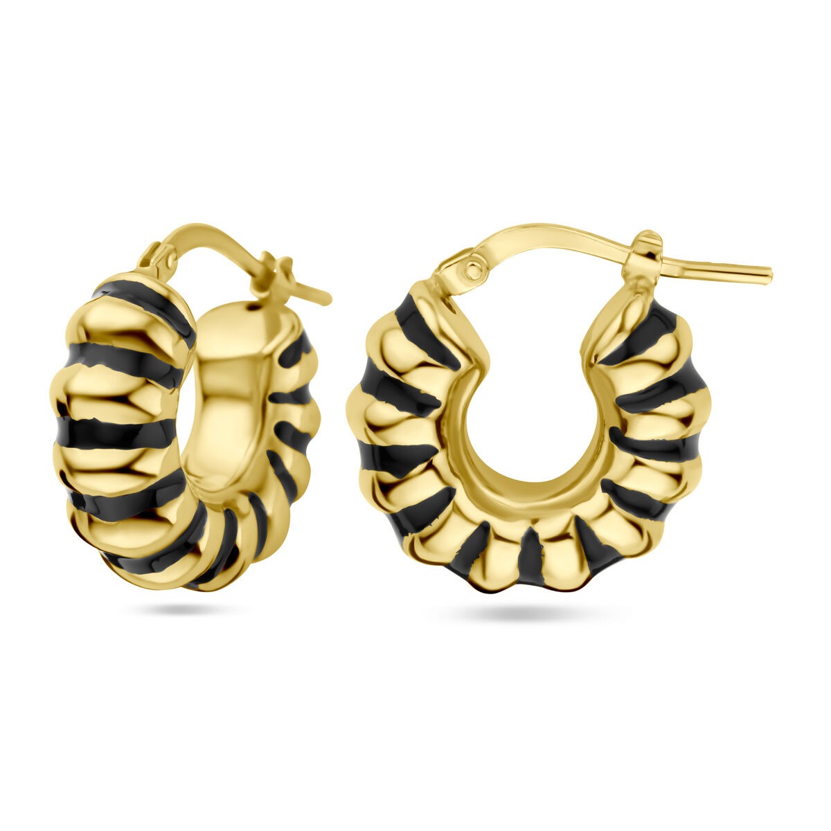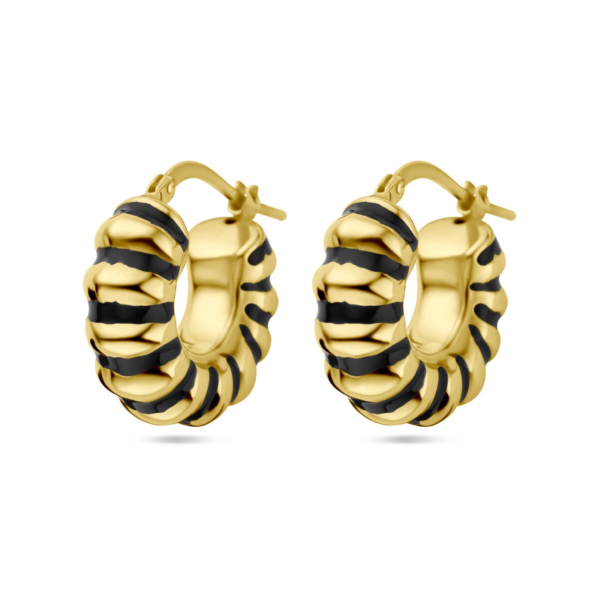 Yellow gold on 925 silver earrings with black enamel. The earrings measure 19x8mm. No warranty on the plating.
