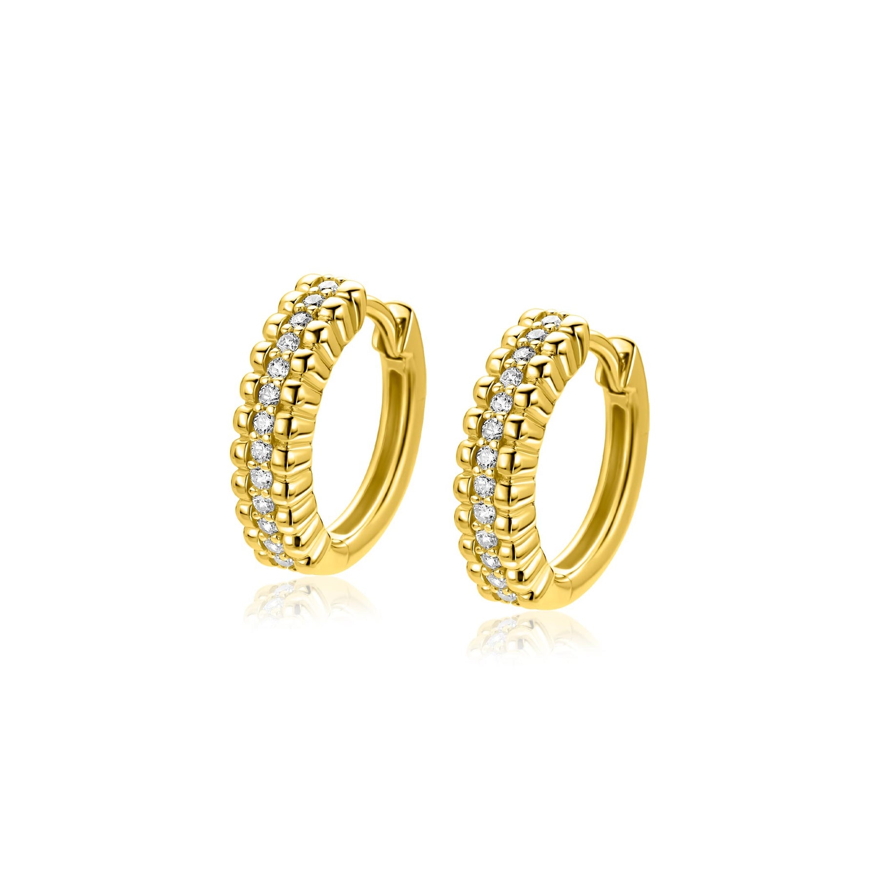 ZINZI goldplated zilveren luxe oorringen (16,5mm) met speelse structuur en een rij witte zirkonia's in het midden. Een stoer en verfijnd ontwerp in één. Met luxe en gemakkelijke klapsluiting. De oorringen zijn vervaardigd van eerste gehalte zilver (925) en extra geel verguld.