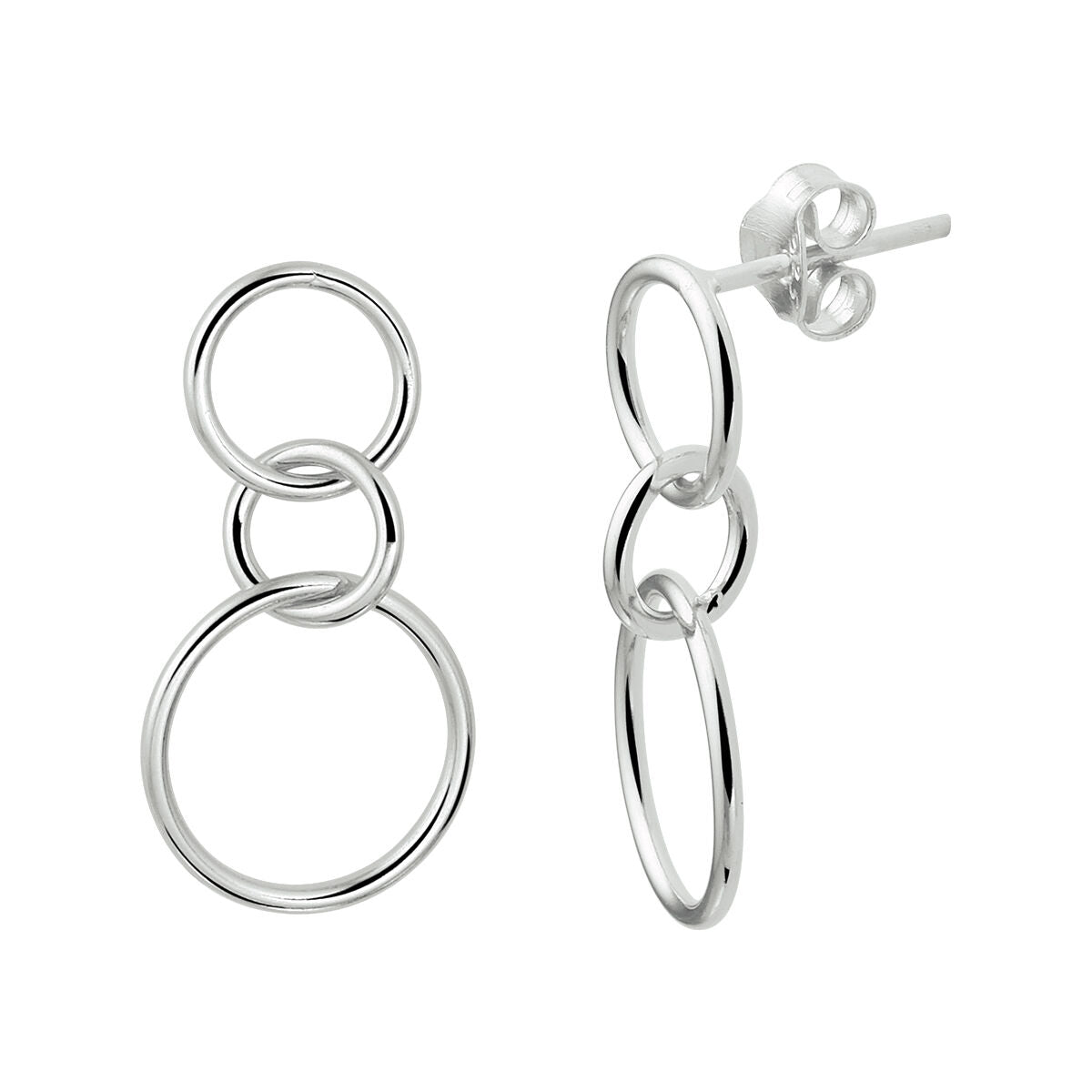 Rhodium-plated 925 silver earrings with circles. The earrings have a total height of 2.3cm and a width of 12mm.