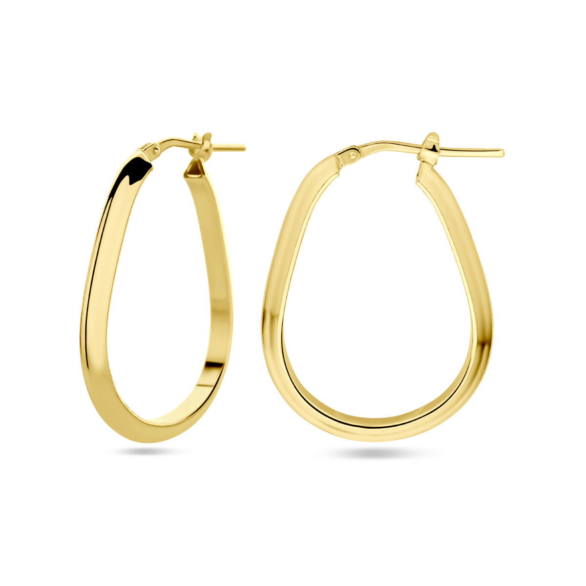 Een paar gouden, druppelvormige oorringen 1 micron zilver verguld (geel) uit de Van der Kooij Collectie, met een gladde afwerking en scharniersluiting - een elegante toevoeging aan elke dames sieraden collectie.