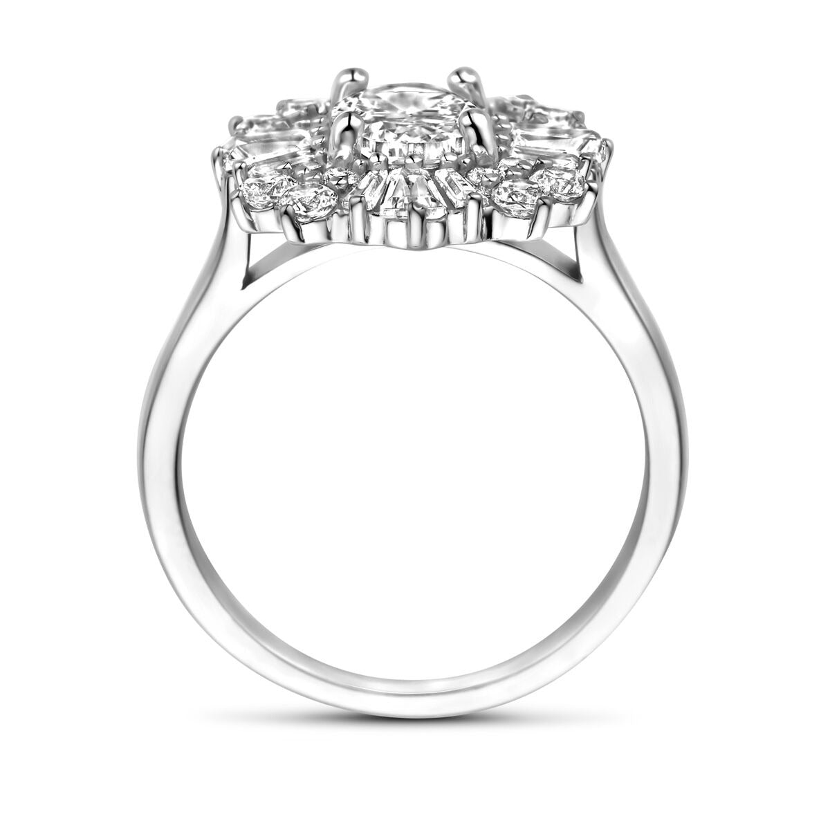 Zilveren damesring met ovale zirkonia – gerhodineerd 925 zilver, 14,5 mm breed