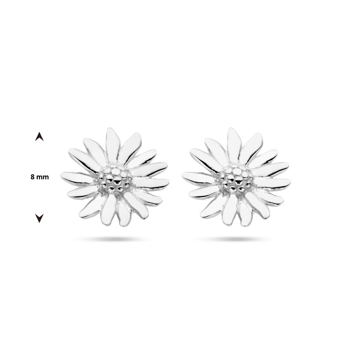 Rhodium-plated 925 silver ear studs in the shape of a daisy. The earrings have a diameter of 8mm.