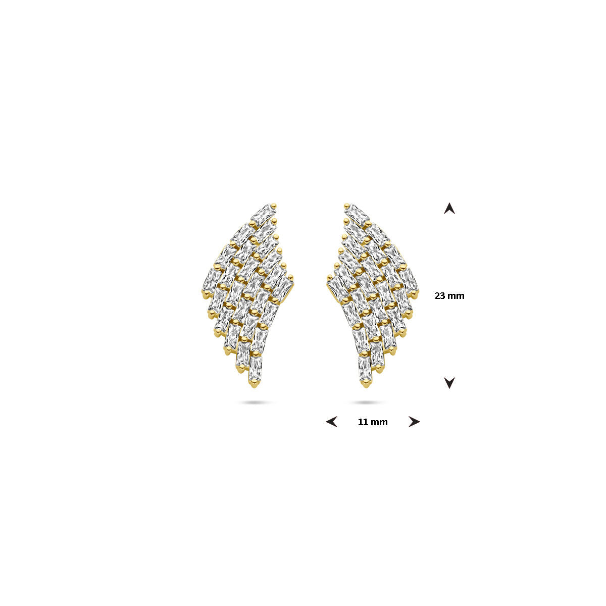 925 zilver verguld oorknoppen uitgevoerd met zirkonia. De oorknoppen hebben een afmeting van 23 x 11mm. Geen garantie op plating.