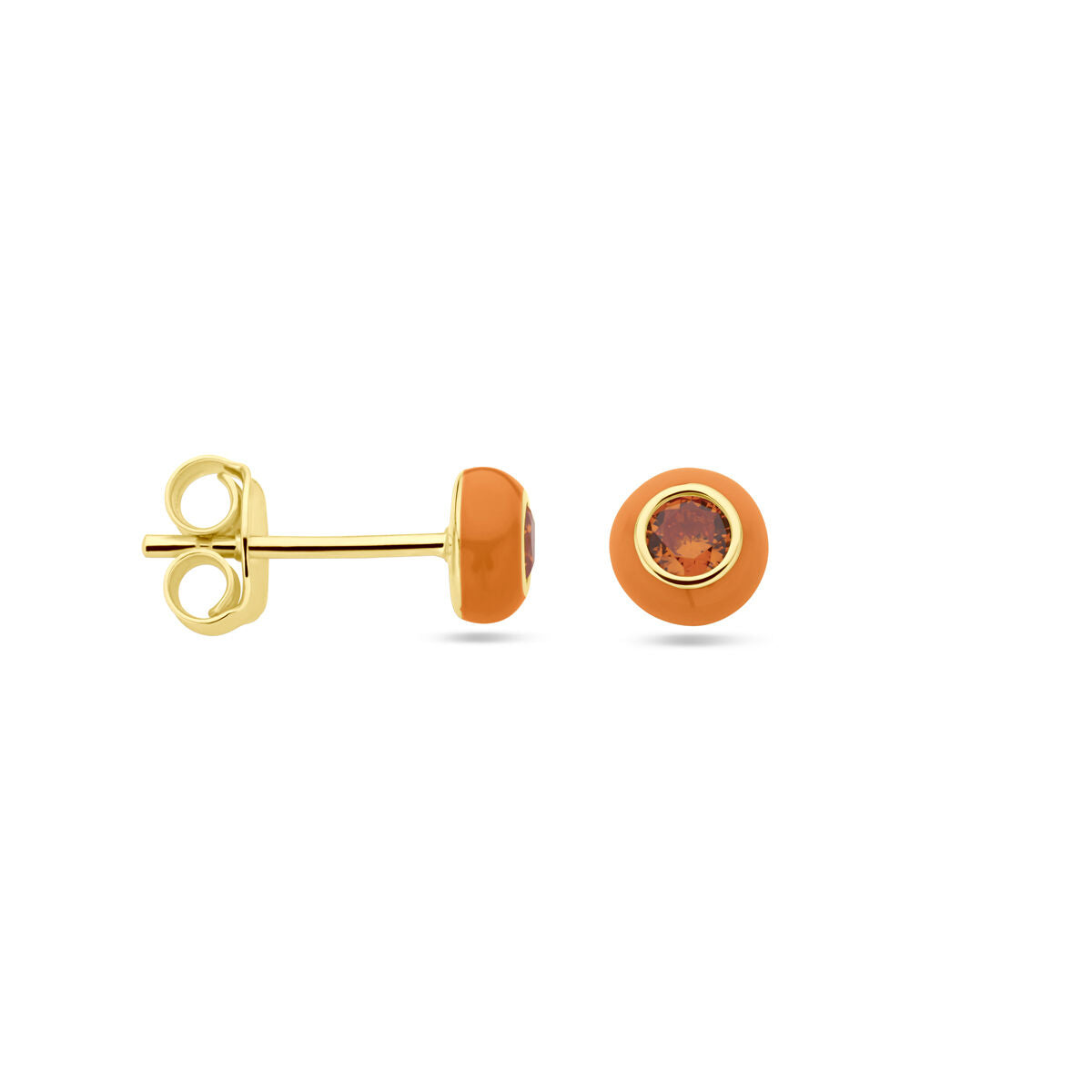 Yellow gold on 925 silver stud earrings with orange enamel and orange zirconia. The ear studs have a diameter of 5.5mm. No guarantee on plating.