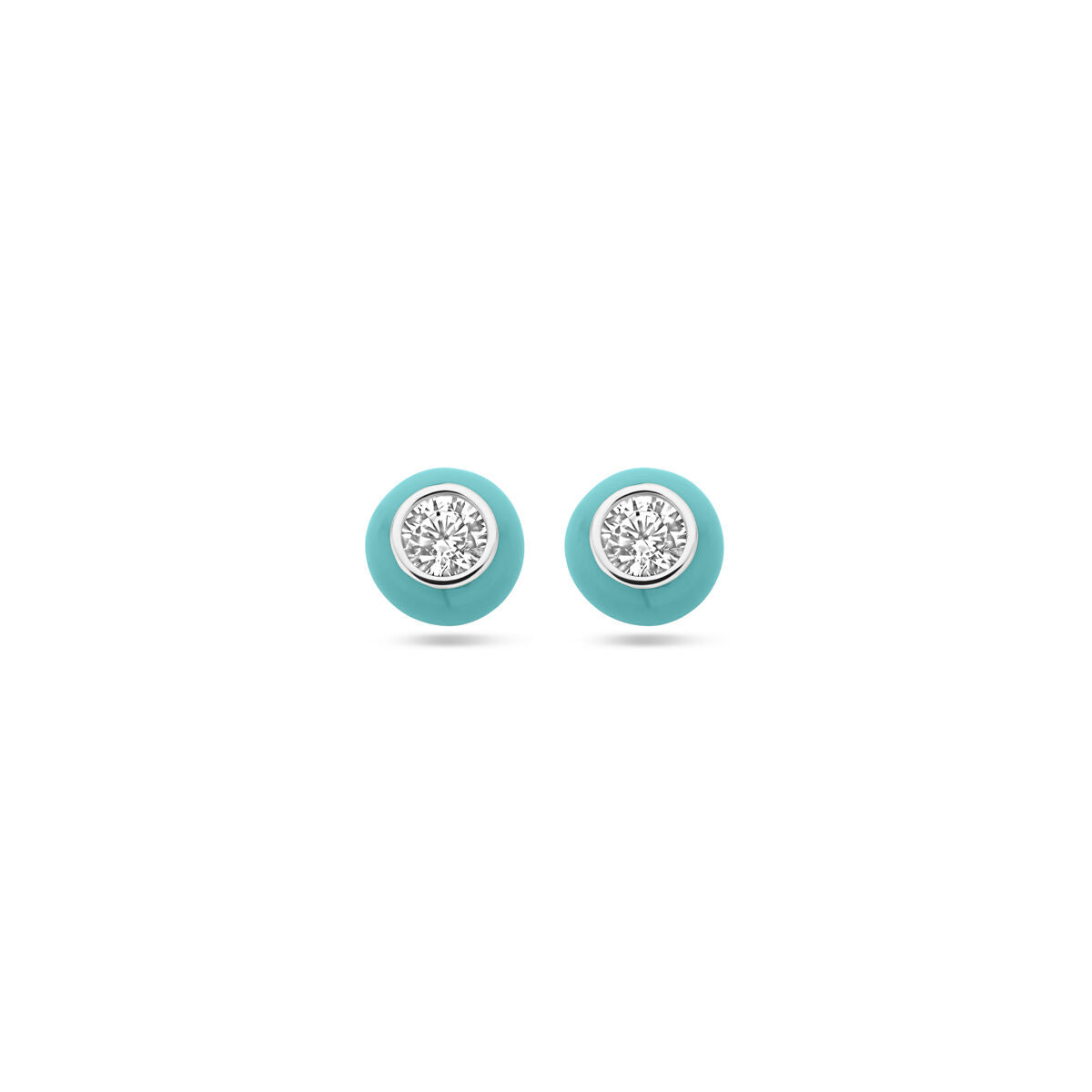 ear studs turquoise enamel and zirconia silver rhodium plated