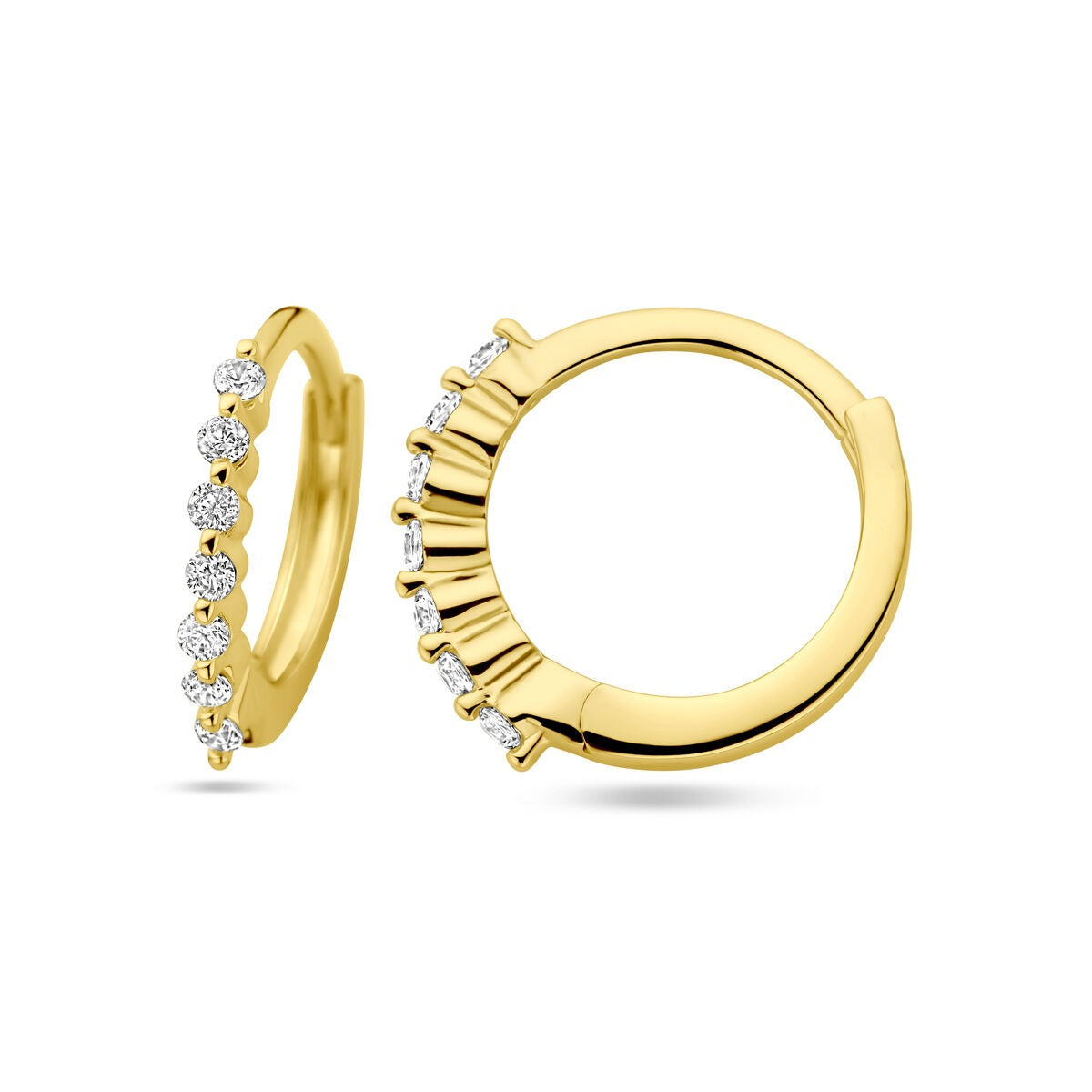 Met hun compacte formaat van 13 x 1,5 mm zijn deze oorringen ideaal voor dagelijks gebruik. De fijne rijzetting van de zirkonia’s voegt net genoeg schittering toe zonder te overdrijven. Dankzij de praktische scharniersluiting zijn ze comfortabel en veilig te dragen.