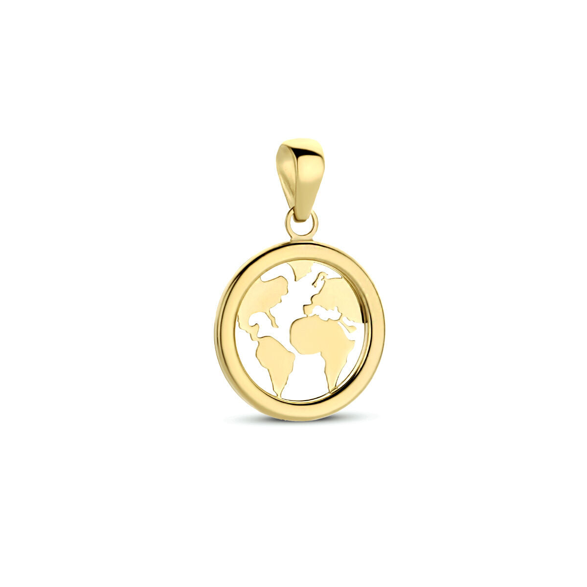 14k yellow gold pendant in the shape of a globe. The pendant has a total height of 1.7cm and a diameter of 11mm.