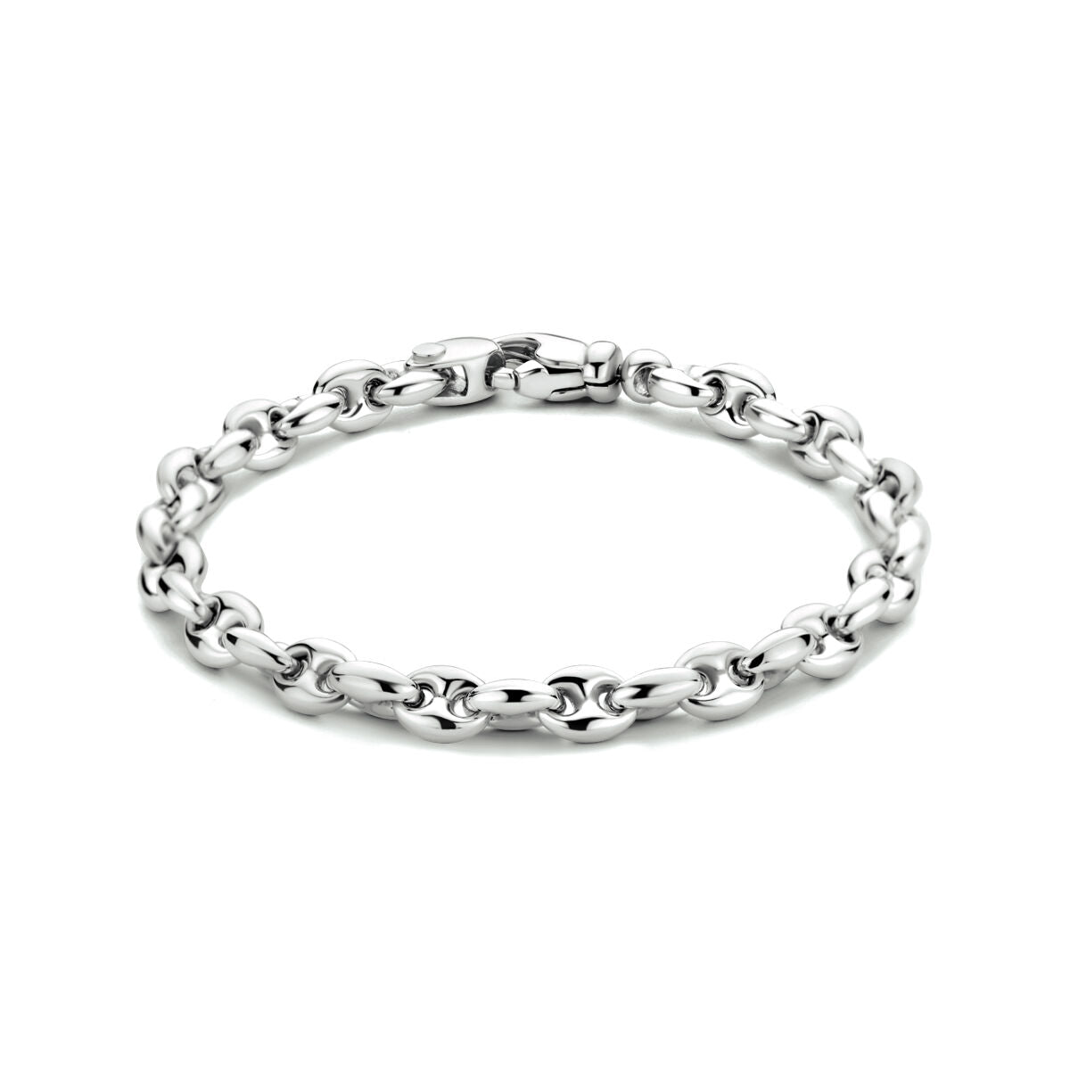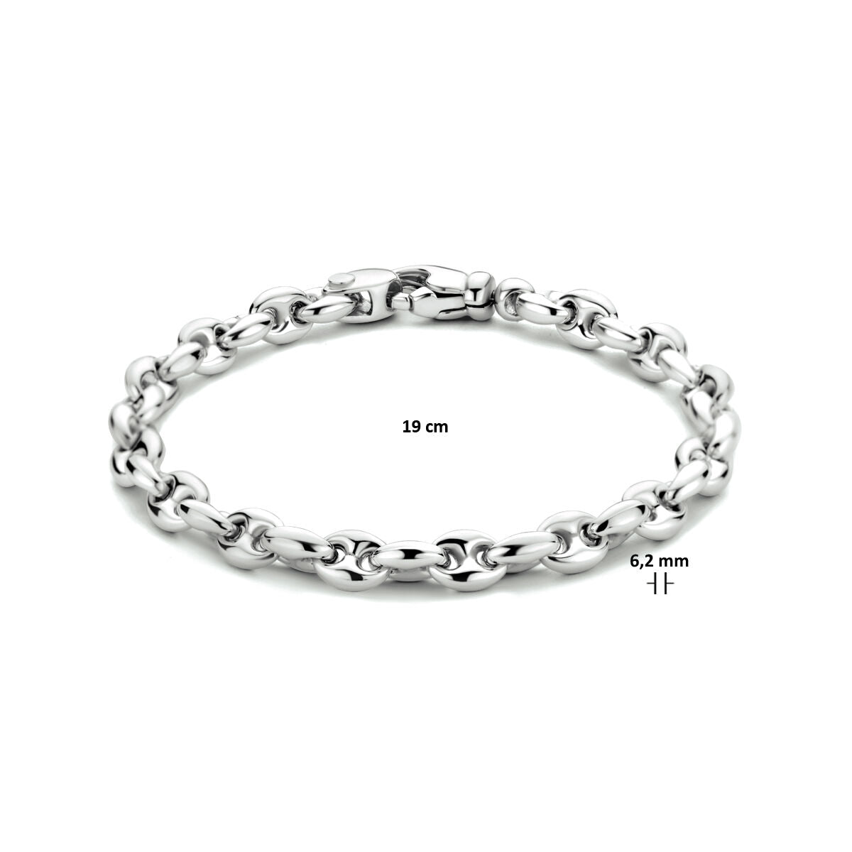 Gerhodineerd 925 zilveren koffieboon armband met een schakelbreedte van 6.2mm. De armband heeft een draaglengte van 19cm en een stevige karabijn sluiting.