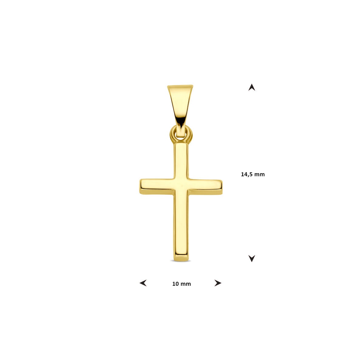 Deze 9k geelgouden hanger is een subtiel en betekenisvol sieraad, vormgegeven als een klassiek kruis. Met zijn verfijnde afmetingen van 14,5 bij 10 mm straalt deze hanger ingetogen elegantie uit, perfect passend bij een spirituele of symbolische stijl. Het warme geelgoud geeft het stuk een tijdloze uitstraling, terwijl de strakke lijnen en minimalistische vormgeving het een moderne touch meegeven. Ideaal om solo te dragen aan een fijne ketting, maar ook prachtig te combineren met andere sieraden voor een gelaagd effect.