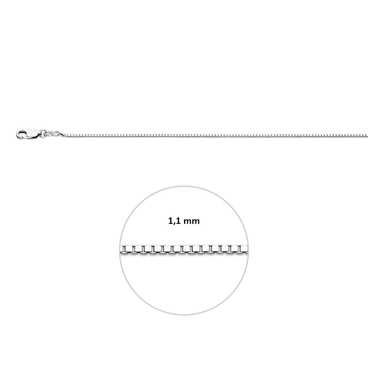 Dit gerhodineerd zilveren Venetiaans collier is een verfijnde klassieker met een moderne afwerking. De strakke, vlakke schakels van 1,1 mm breed zorgen voor een subtiele glans en een elegante belijning rond de hals. Dankzij de rhodiumlaag blijft het collier langdurig mooi, met extra bescherming tegen verkleuring en krassen.