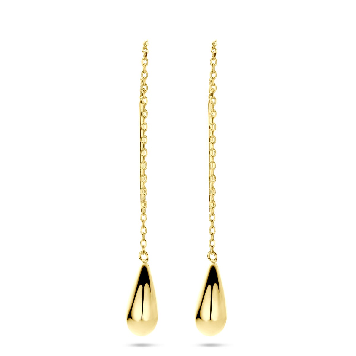Gouden doortrekoorbellen 14k druppelvorm – dames