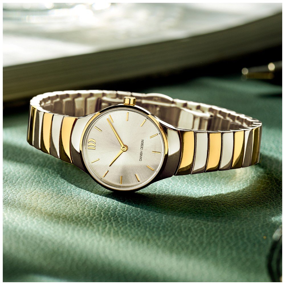 The two-tone quality watchband that continues uninterrupted behind, giving the suggestion of a bracelet, with smooth linked stainless steel elements. Thanks to the user-friendly butterfly clasp, it easily opens and closes, lying around the wrist like a piece of jewelry. The dial has undergone a sun-ray treatment, reflecting light as if the sun is shining.