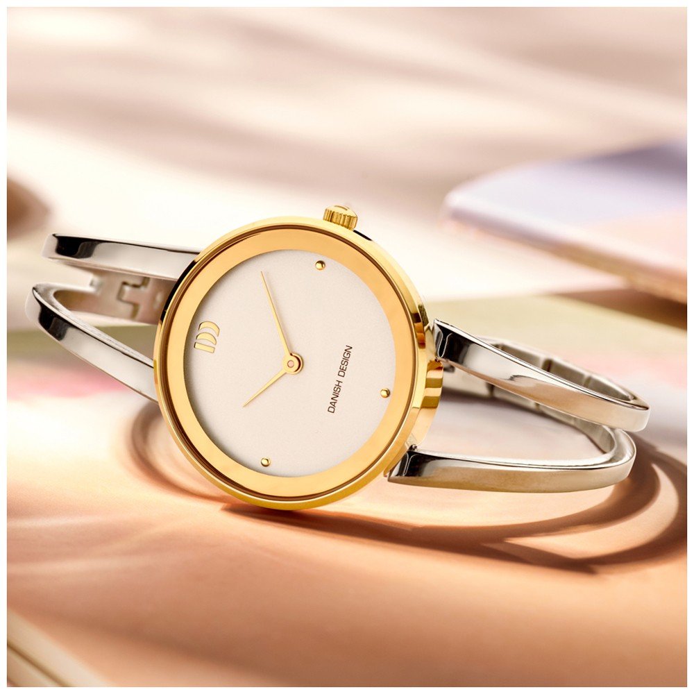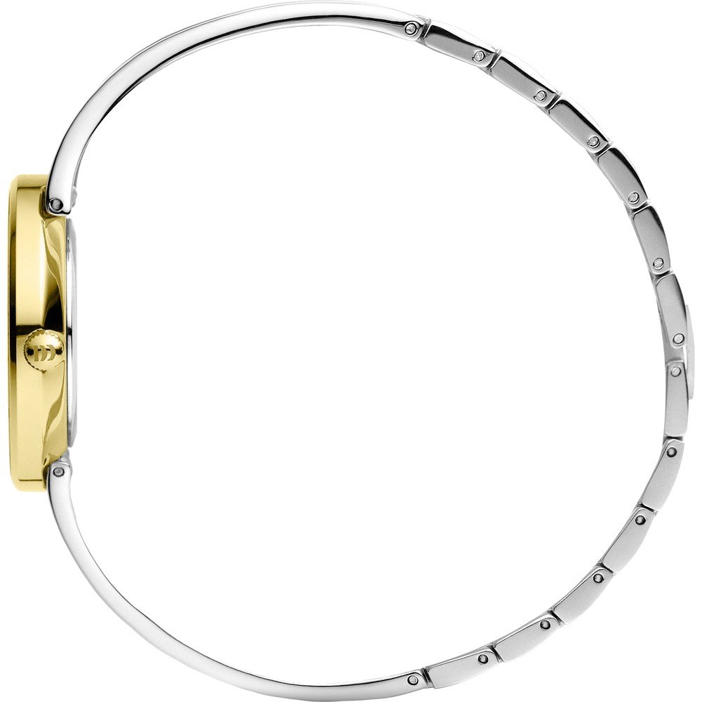 The Nostalgi 1988 Two-Tone Bangle draws clear inspiration from the original 1988 model, infusing it with modern technique and ambiance. The Silver-toned stainless steel band, featuring an open design, exudes both personality and femininity. The broad, richly colored glass ring adds visual depth to the Silver-colored dial. Three whimsically positioned pins and the luminous hands ensure instant readability of the time. Highly approachable and undeniably current in style.