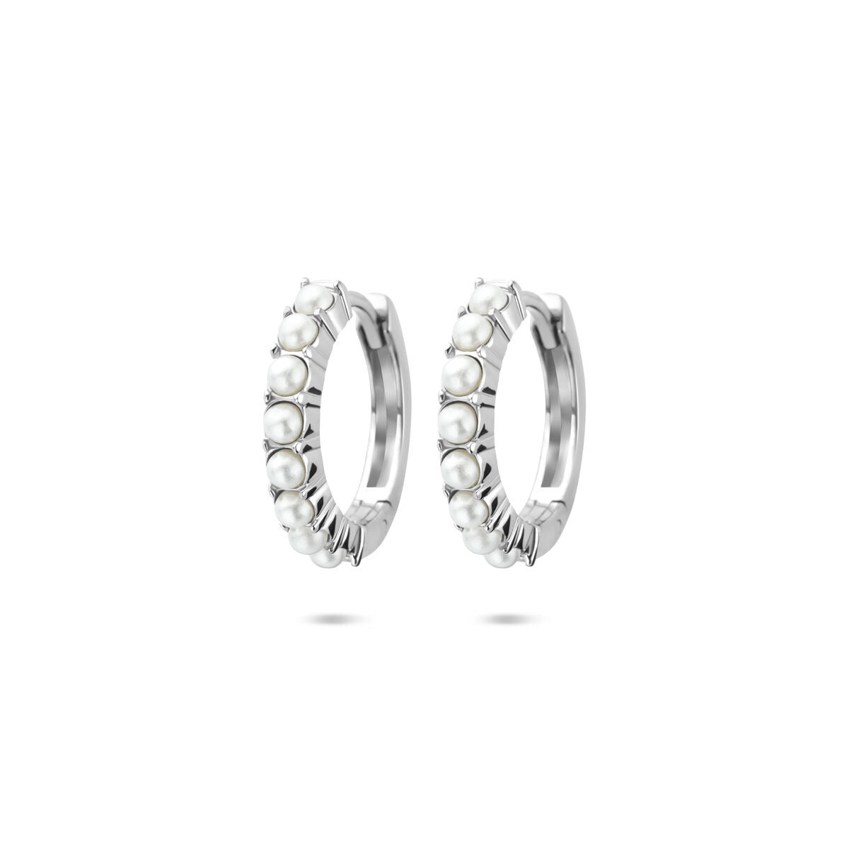 De witte parel van 2 mm voegt een zachte glans toe aan het ontwerp, terwijl de rhodiumlaag het zilver beschermt tegen verkleuring en krassen – voor een langdurige, schitterende afwerking. Dankzij de scharnier-/klapsluiting zijn de oorringen gemakkelijk te dragen en sluiten ze veilig.
