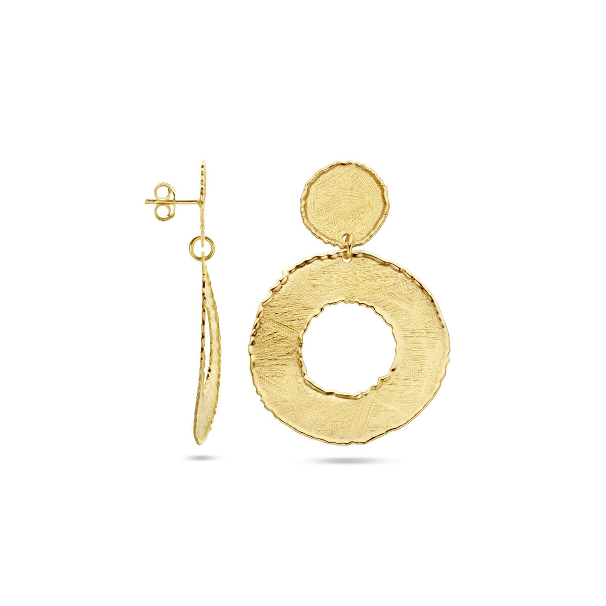 oorhangers gescratcht cirkels 50 mm zilver verguld (geel)