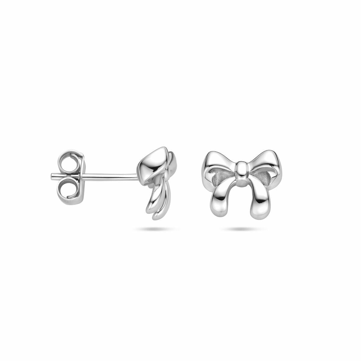 Gerhodineerd zilveren oorknoppen in strikvorm 8x9.5mm