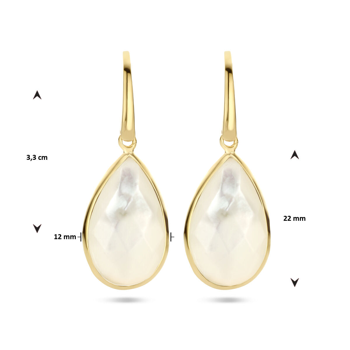Yellow gold on 925 silver earrings with mother of pearl. No guarantee on plating.