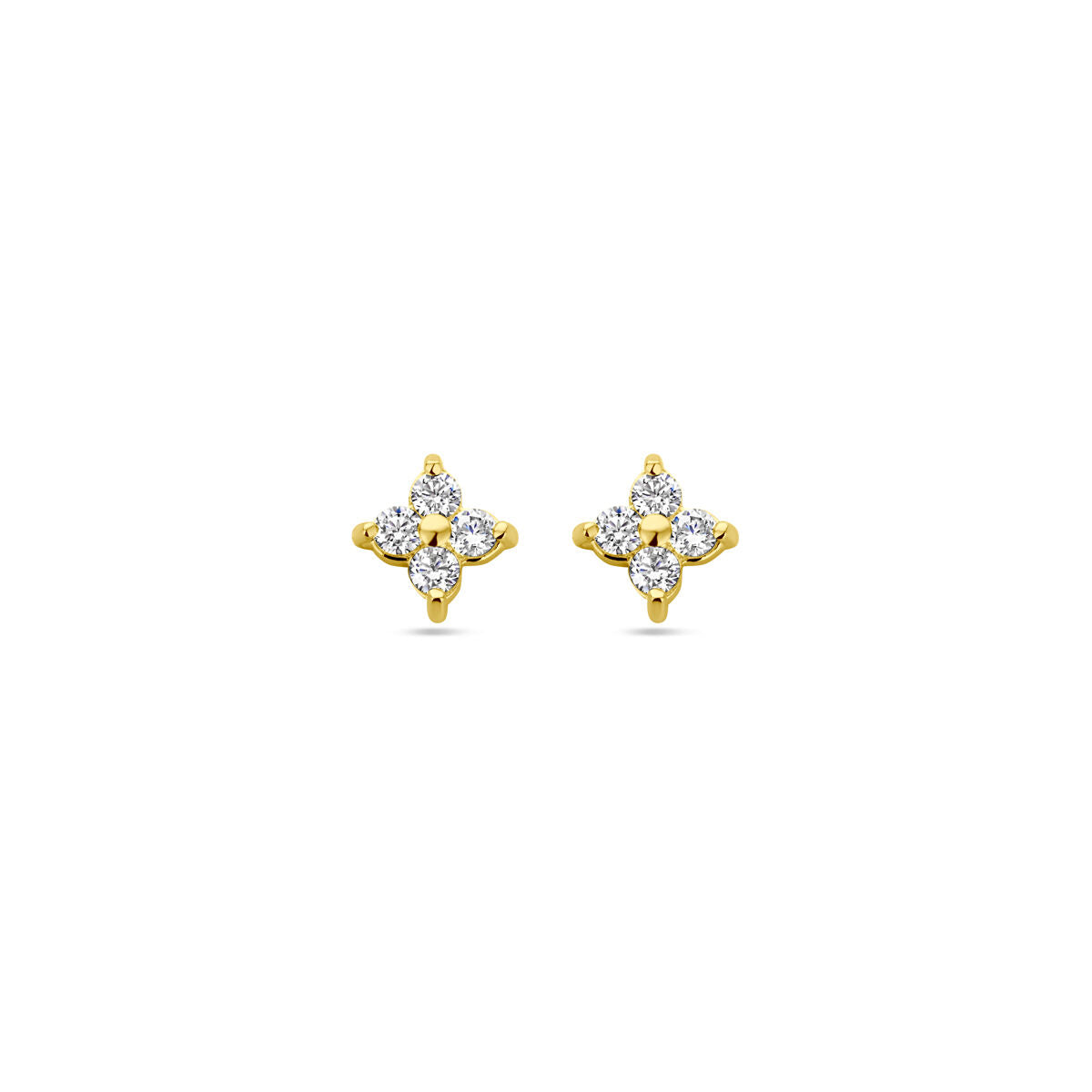 ear studs flower zirconia 1 micron silver gold plated (yellow)