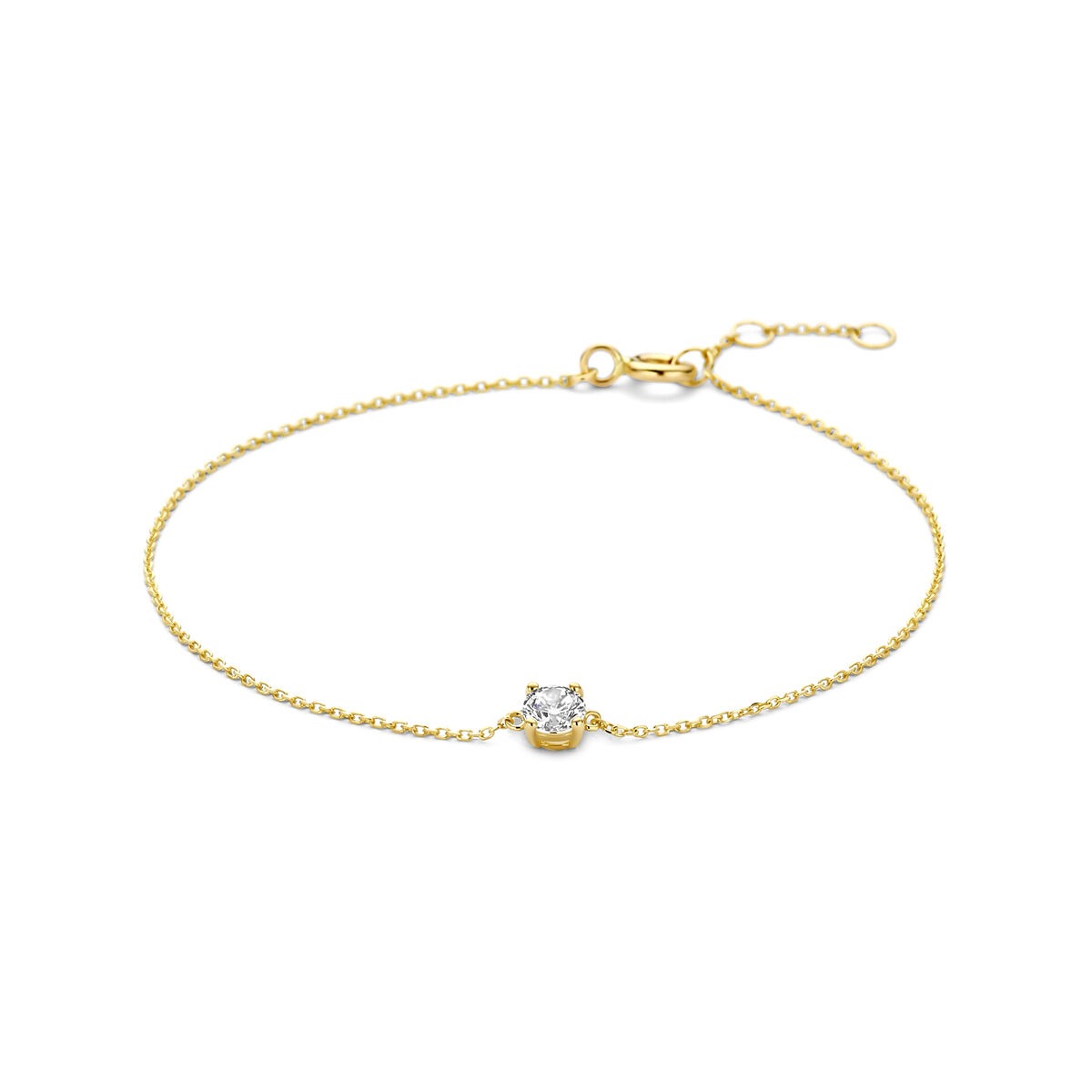 9k Geel kleurige armband uitgevoerd met zirkonia. De armband heeft draaglengtes van 16,5 - 17,5 - 18,5 cm.