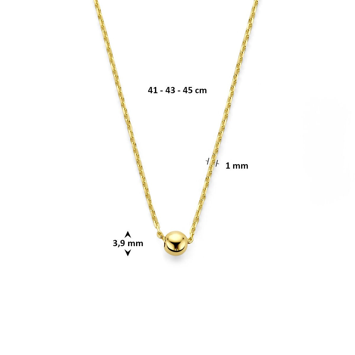 Een subtiel statement van verfijning – dit 9 karaat geelkleurige collier is een elegante aanvulling op elke sieradencollectie. Het delicate ontwerp bestaat uit fijne schakels in combinatie met een glanzend bolletje als middelpunt. De speelse structuur van bolletjes en buisvormige schakels zorgt voor een luchtige, moderne uitstraling, terwijl de warme gouden tint zorgt voor een klassieke basis die moeiteloos te combineren is.