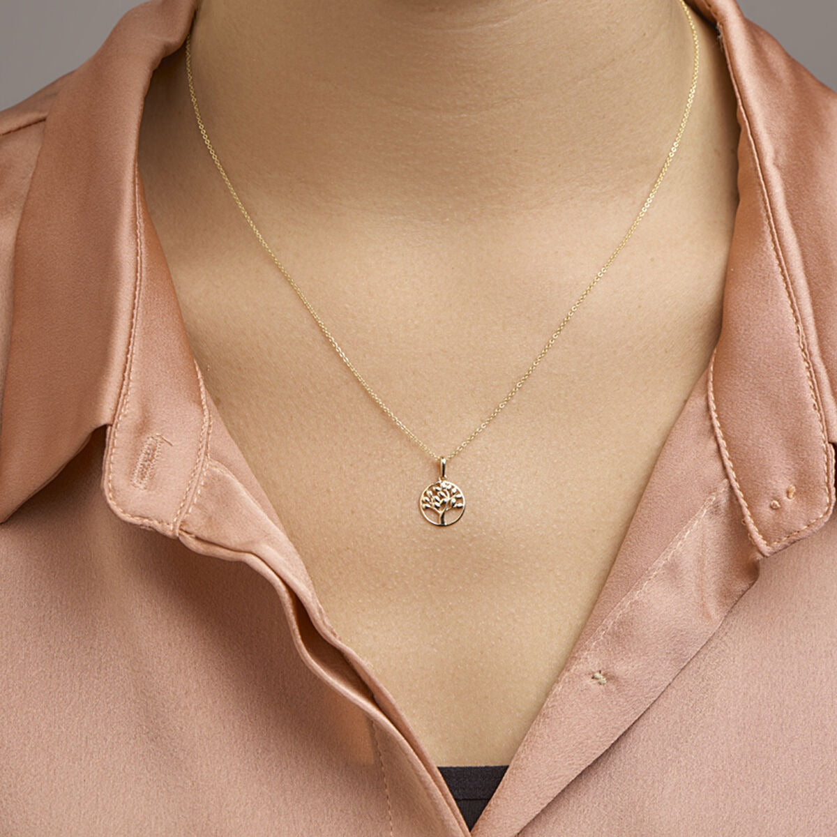 Deze 9 karaat geelgouden hanger met levensboom is een krachtig symbool van groei, balans en verbondenheid. Het ronde ontwerp omlijst de fijn uitgewerkte levensboom, die met zijn sierlijke takken en wortels staat voor kracht en innerlijke harmonie. De warme goudkleur geeft het symbool extra diepte en betekenis, terwijl het tijdloze design moeiteloos past bij elke stijl.