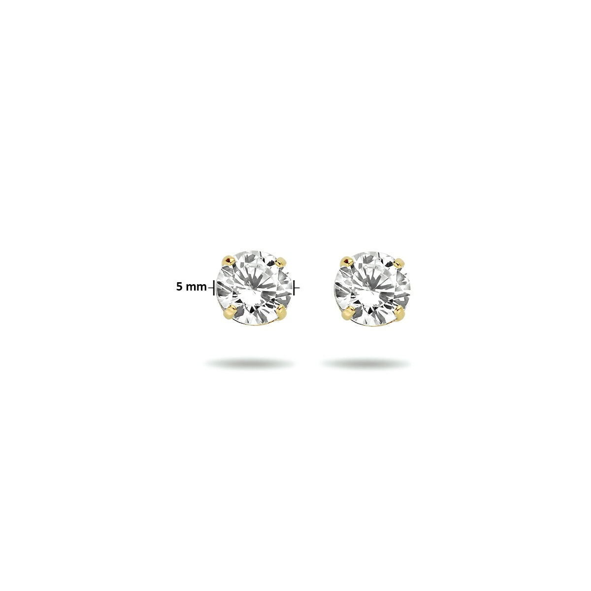 Deze verfijnde 9k geelgouden Ringen met zirkonia stralen een tijdloze elegantie uit. Centraal in het ontwerp schittert een briljant geslepen transparante zirkonia van 5 mm, subtiel gezet in een klassieke 4-poots chatonzetting. De warme gloed van het geelgoud vormt een prachtige combinatie met de heldere fonkeling van de steen, wat deze oorknopjes een luxueuze uitstraling geeft.