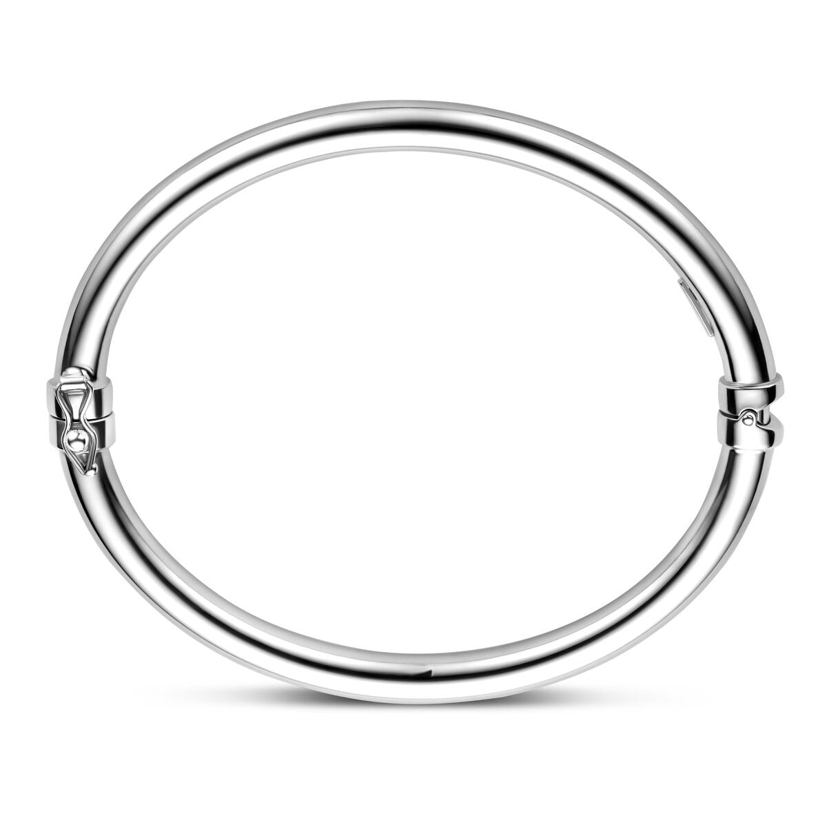 Dankzij de praktische scharniersluiting is de armband gemakkelijk om en af te doen, zonder in te boeten aan stijl of comfort. Een veelzijdige keuze voor dagelijks gebruik of als verfijnd accent bij een formele outfit – solo gedragen of gecombineerd met andere zilveren dames armbanden.